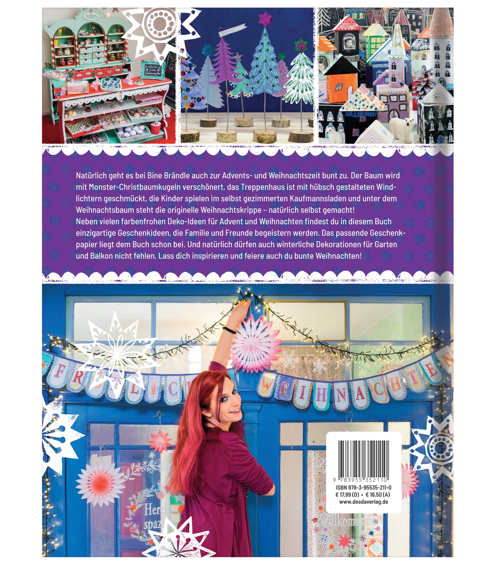 Bine Brändle feiert Weihnachten! Natürlich bunt! Nichts ist vor der kreativen Mama von zwei Söhnen sicher. Sie bastelt mit ihren Kindern selbst gemachte Christbaumanhänger, baut einzigartige Schneemänner und zaubert mit einfachen Mitteln Weihnachtsatmosphäre in das ganze Haus. Auf jeder Seite finden sich originelle Dekoideen für das Weihnachtsfest, Gestaltungsvorschläge für die Adventszeit und Geschenkideen, die unter keinem Weihnachtsbaum fehlen dürfen. Bines Welt ist bunt – da macht sie auch in der Advents- und Weihnachtszeit keine Ausnahme!