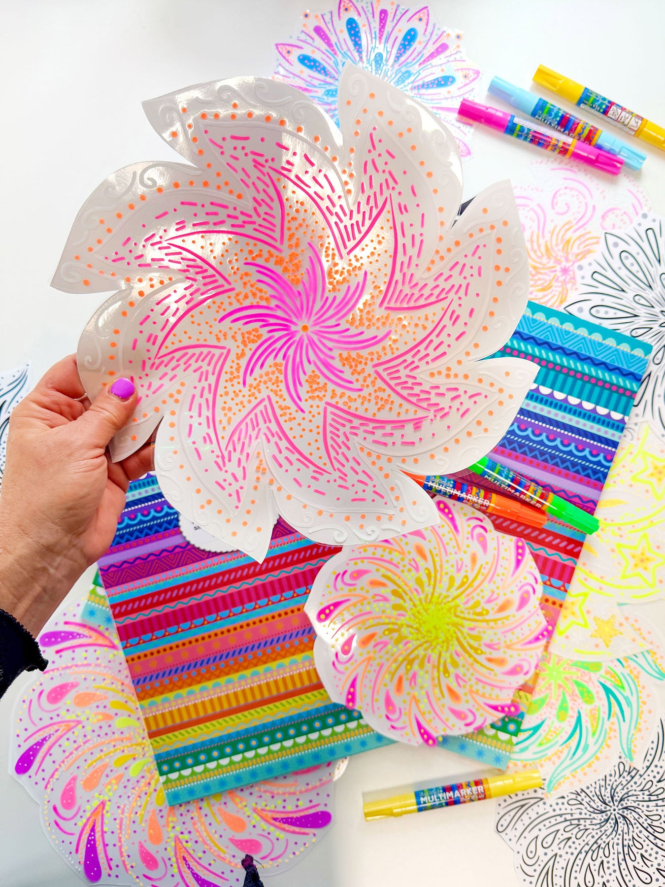 Gegebenfalls, z. B. bei einer Blume oder einem Mandala, die Kontur knapp an der Kante ausschneiden.