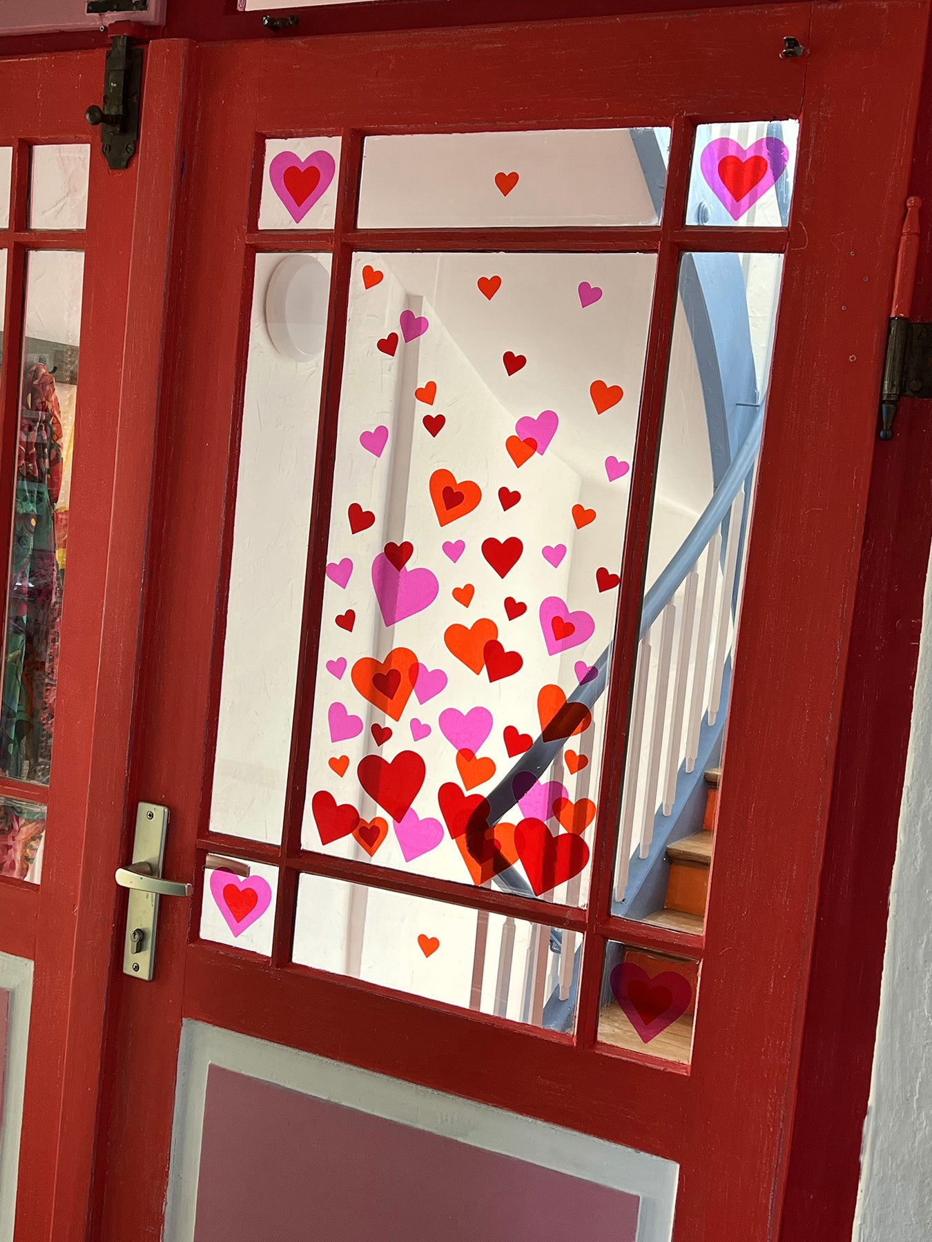 Mithilfe der bunten Herzen kannst du Fensterscheiben im Handumdrehen in ein Farbenmeer verwandeln.