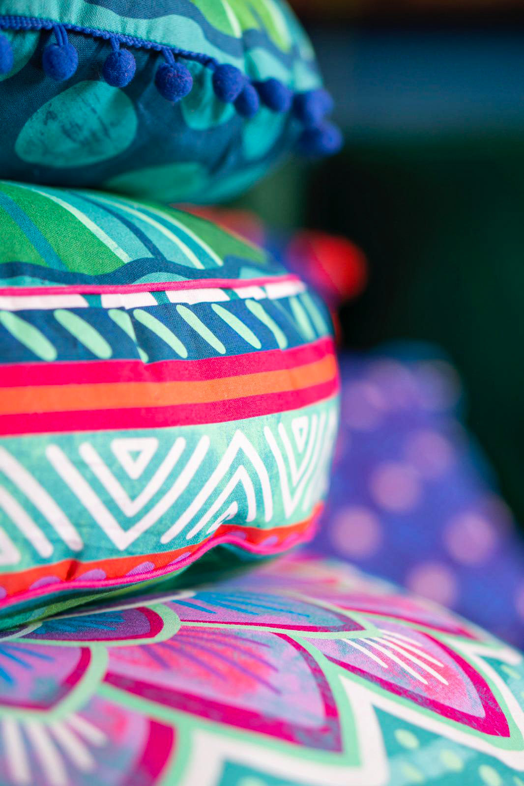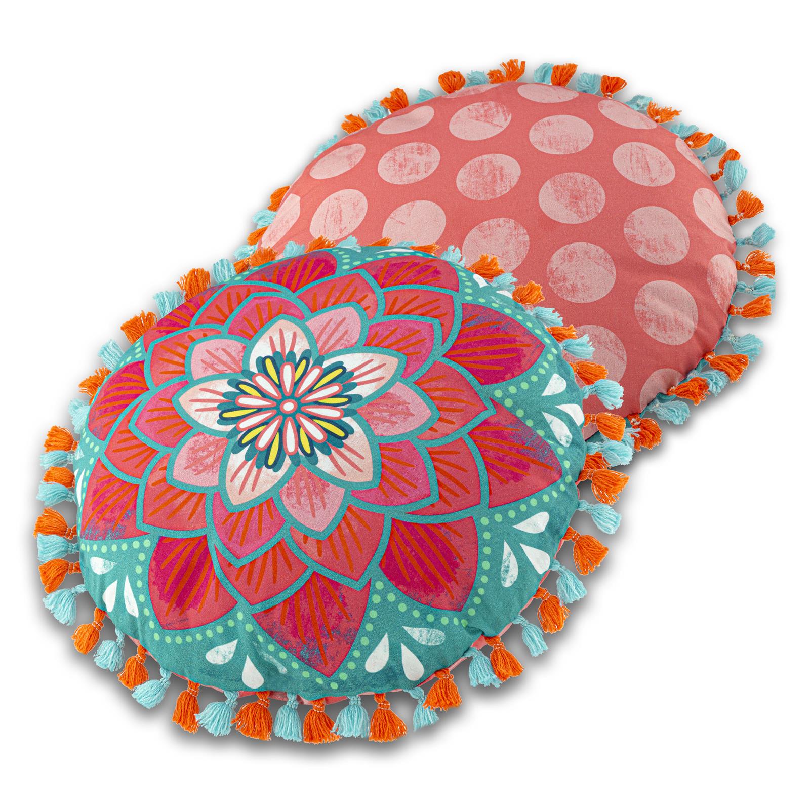Die Dekokissen sind in unterschiedlichen Größen und Motiven erhältlich, kombiniert mit Biesen, Bommeln/ Pompoms und Quasten im Boho-Style. Dank der unterschiedlichen Rückseiten kann die Ansicht ständig gewechselt werden. Mixen Sie wild durcheinander! Je mehr Farben und Designs, umso besser, denn alles passt zusammen.