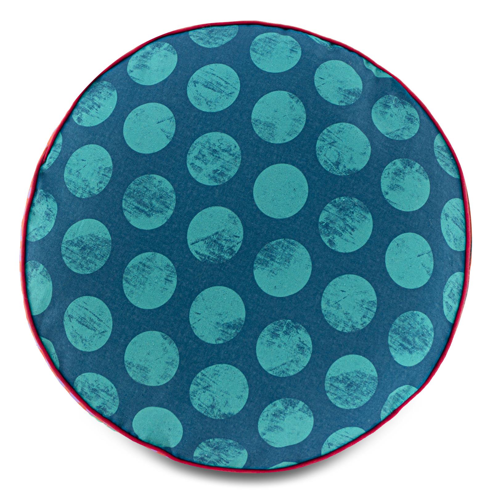 Das Motiv Seerosenblatt in Grüntönen wurde mit „Fetten Petrolfarbenen Punkten“ auf der Rückseite kombiniert und mit einer kontrastreichen roten Biese abgerundet. Als Einzelkissen oder als Ergänzung zu den Seerosenkissen!