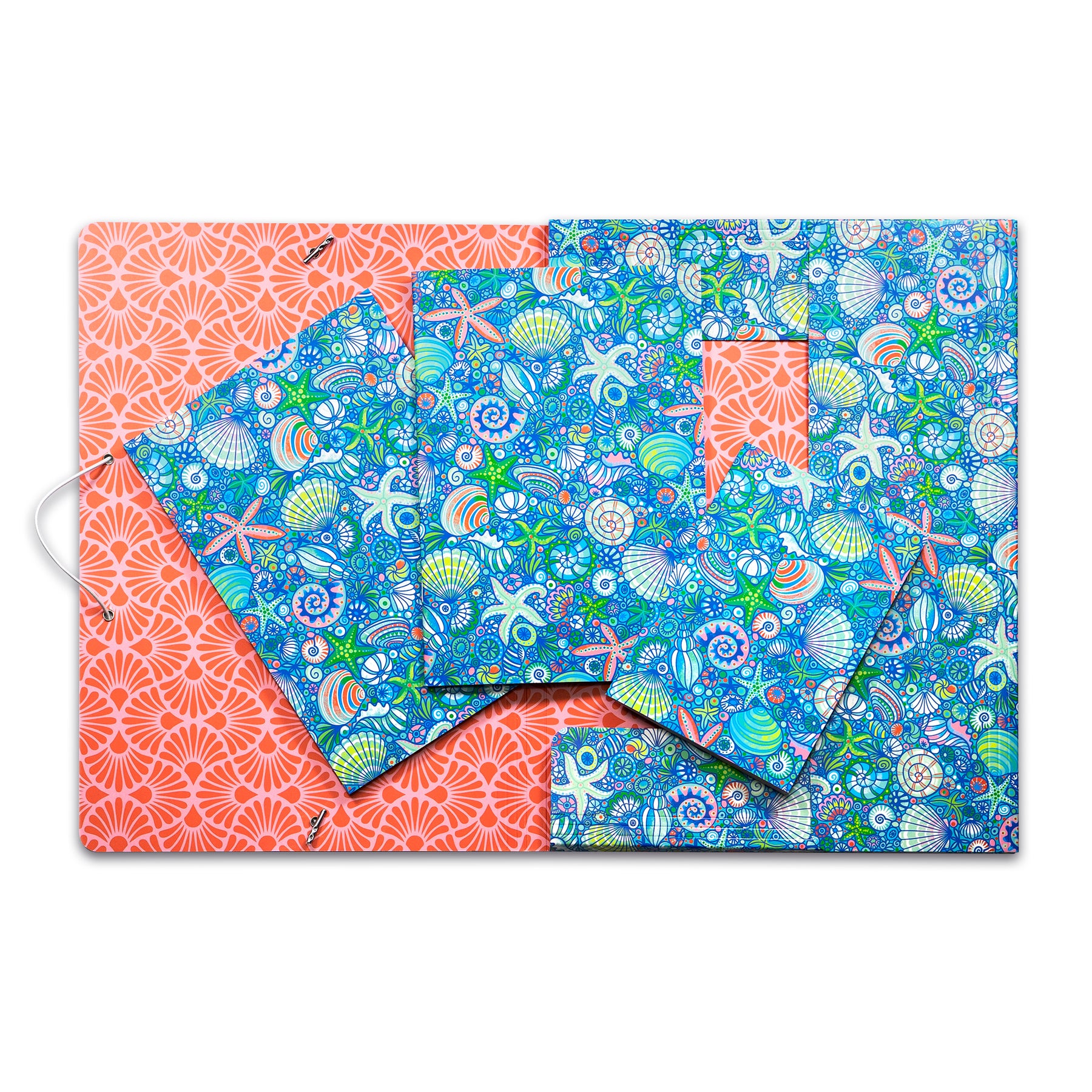 Abgerundet wird das Set durch die DIN-A4-Sammelmappe aus hochwertigem Karton, innen und außen farbig gestaltet, mit Gummibandverschluss, der Unterlagen sicher zusammenhält.