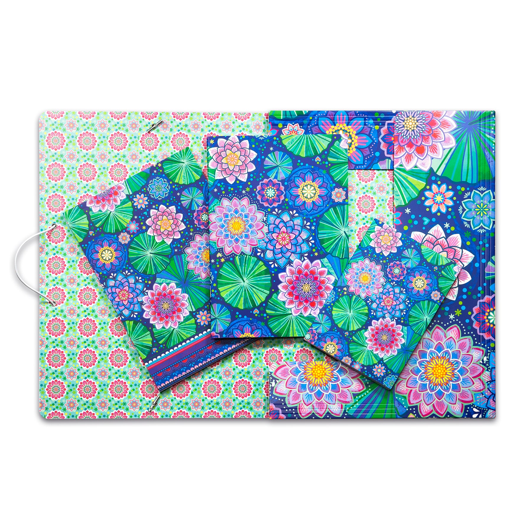 Kreativ, farbenfroh und wunderschön gestaltet – dieses Set vereint vier hochwertige Produkte mit liebevollen Motiven der bekannten Künstlerin Bine Brändle: einen A5-Block, ein A5-Heft, ein A6-Heft und eine DIN-A4-Sammelmappe.