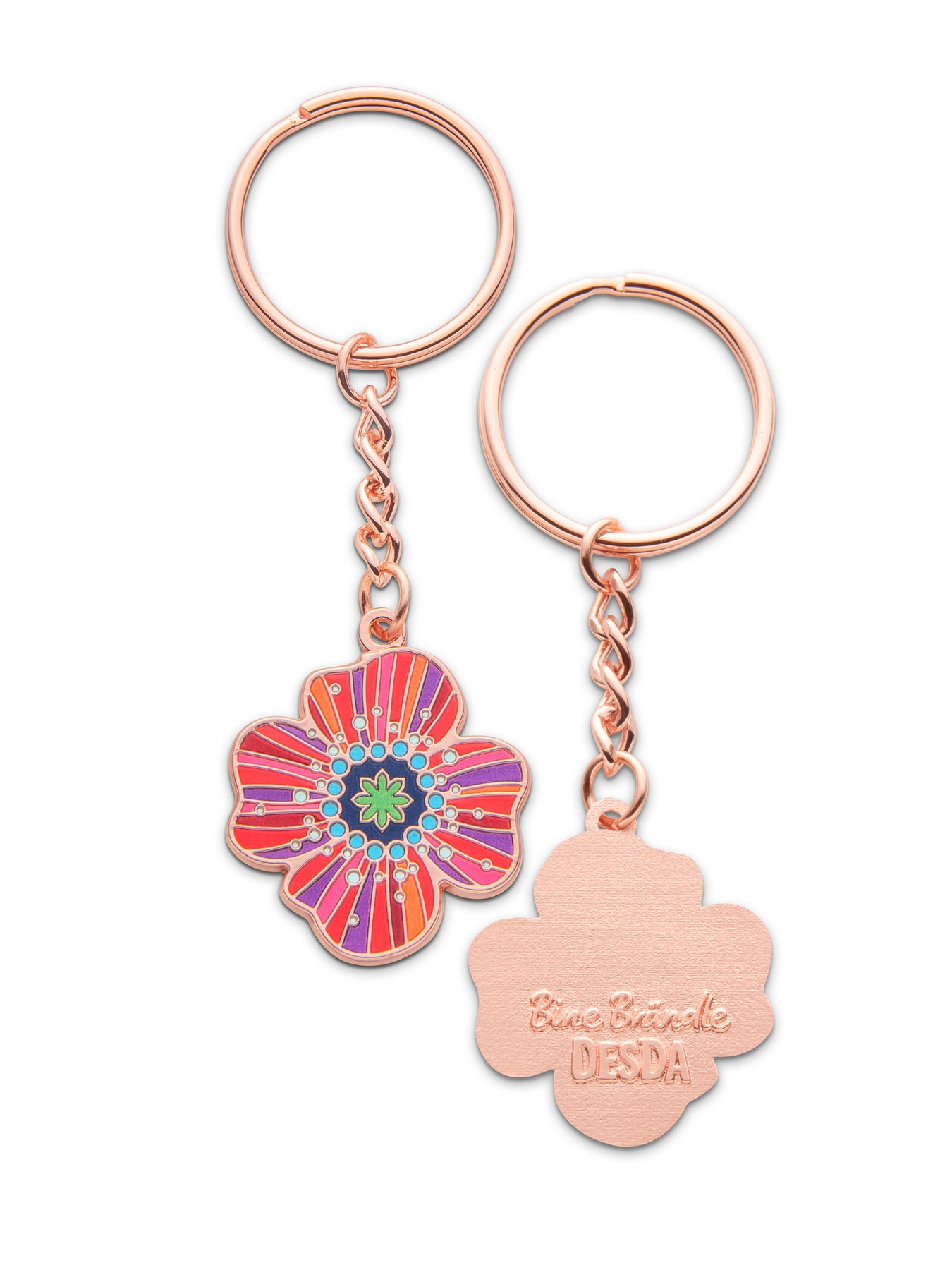 Farbenfroh, zauberhaft und voller Charme – dieser von Bine Brändle entworfene Schlüsselanhänger bringt jeden Tag ein Stück Lebensfreude in deinen Alltag. Mit seinem liebevollen Design wird er zu einem wertvollen, ständigen Begleiter, der deine Schlüssel nicht nur sicher, sondern auch wunderschön macht. Ein kleines Kunstwerk, das jedes Mal ein Lächeln zaubert.