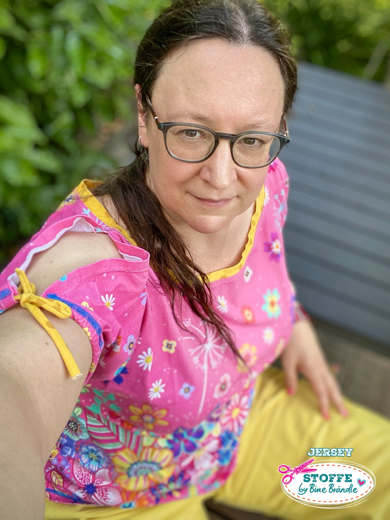 Farbenfroher Stoff mit dem Motiv "Blumenmeer pink".