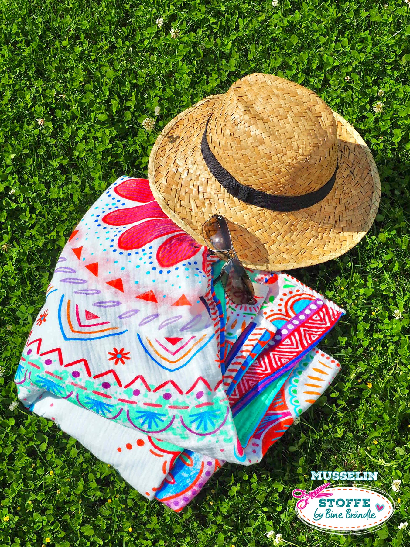 Farbenfroher Stoff mit dem Motiv "Mandala weiß-rot".