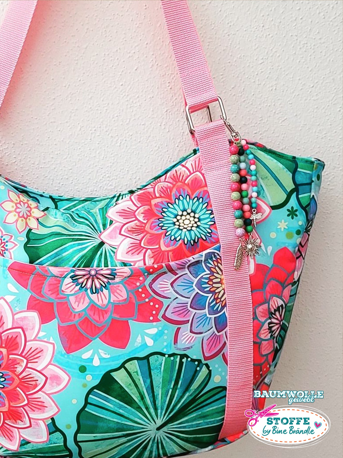 Farbenfroher Stoff mit dem Motiv "Seerosenteich".