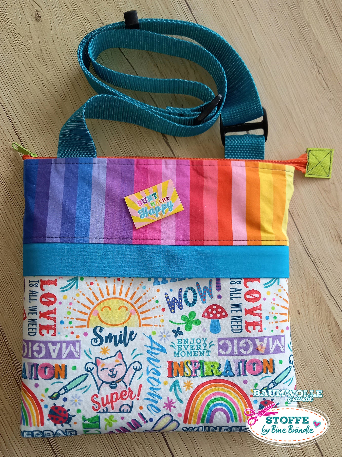 Farbenfroher Stoff mit dem Motiv "Streifenliebe Regenbogenbunt".