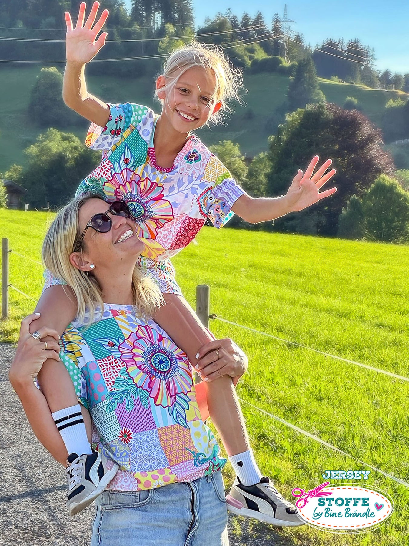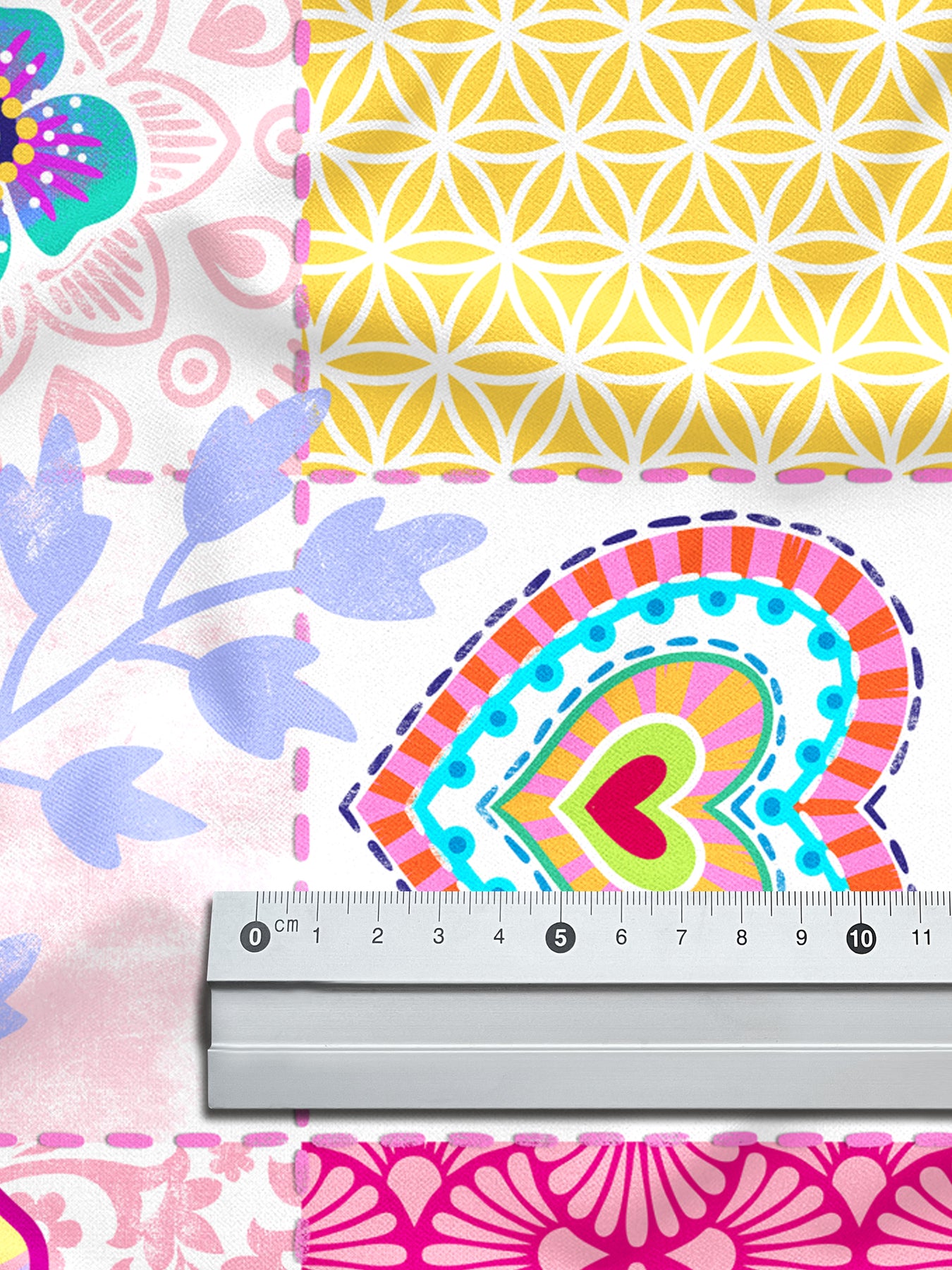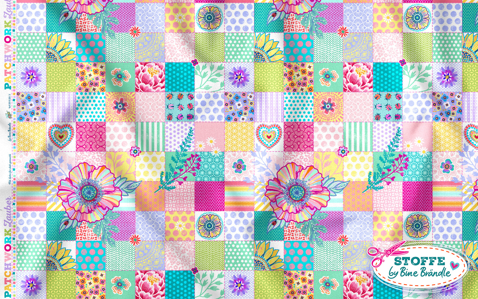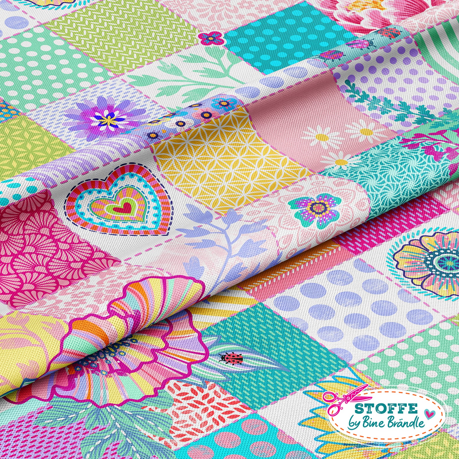 Farbenfroher Stoff mit dem Motiv "Patchwork Quadrate pastell".