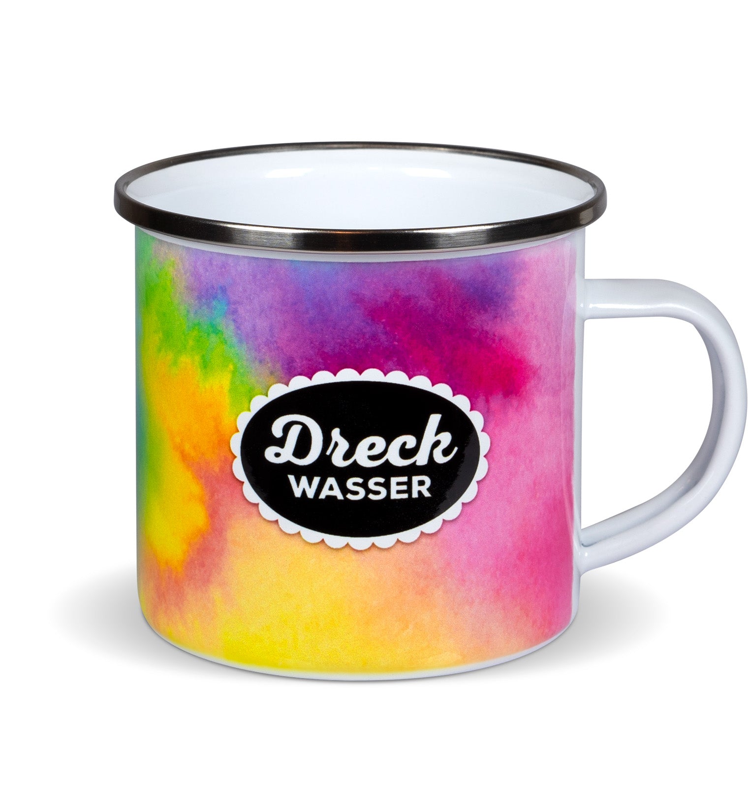 Originelle Sammeltasse aus Emaille mit dem "Dreckwasser" Motiv.