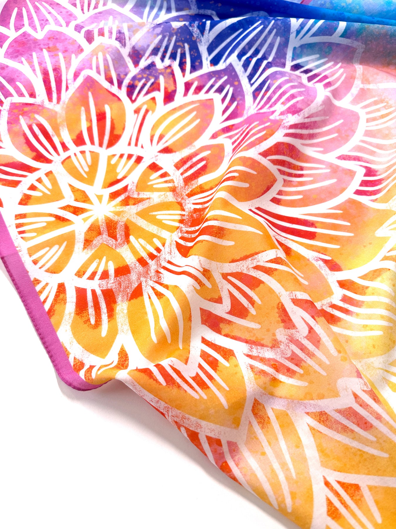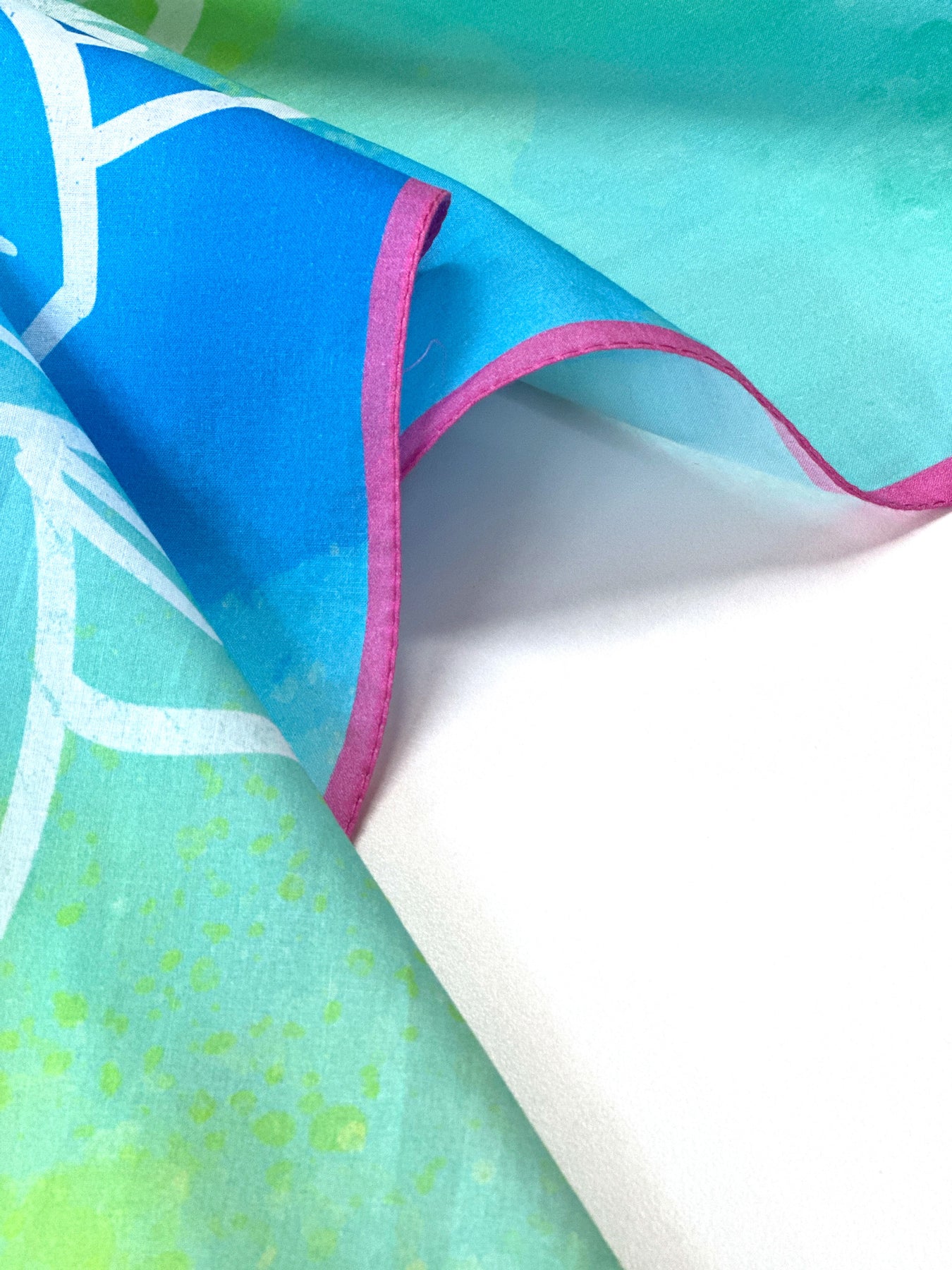 Der einseitige Druck sorgt dafĂŒr, dass die RĂŒckseite etwas pastelliger wirkt – so entsteht ein wunderschöner, sanfter Farbverlauf, der das Tuch noch lebendiger macht.