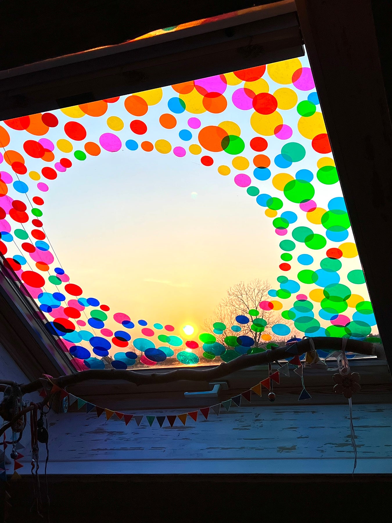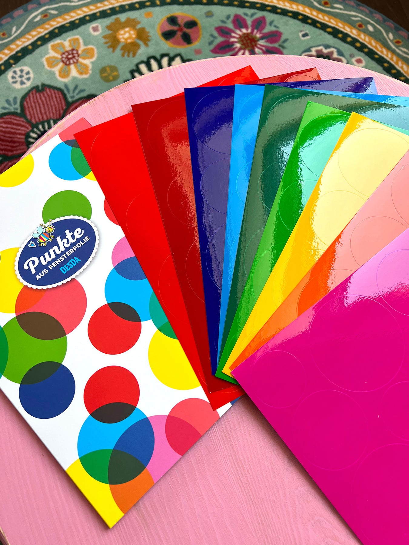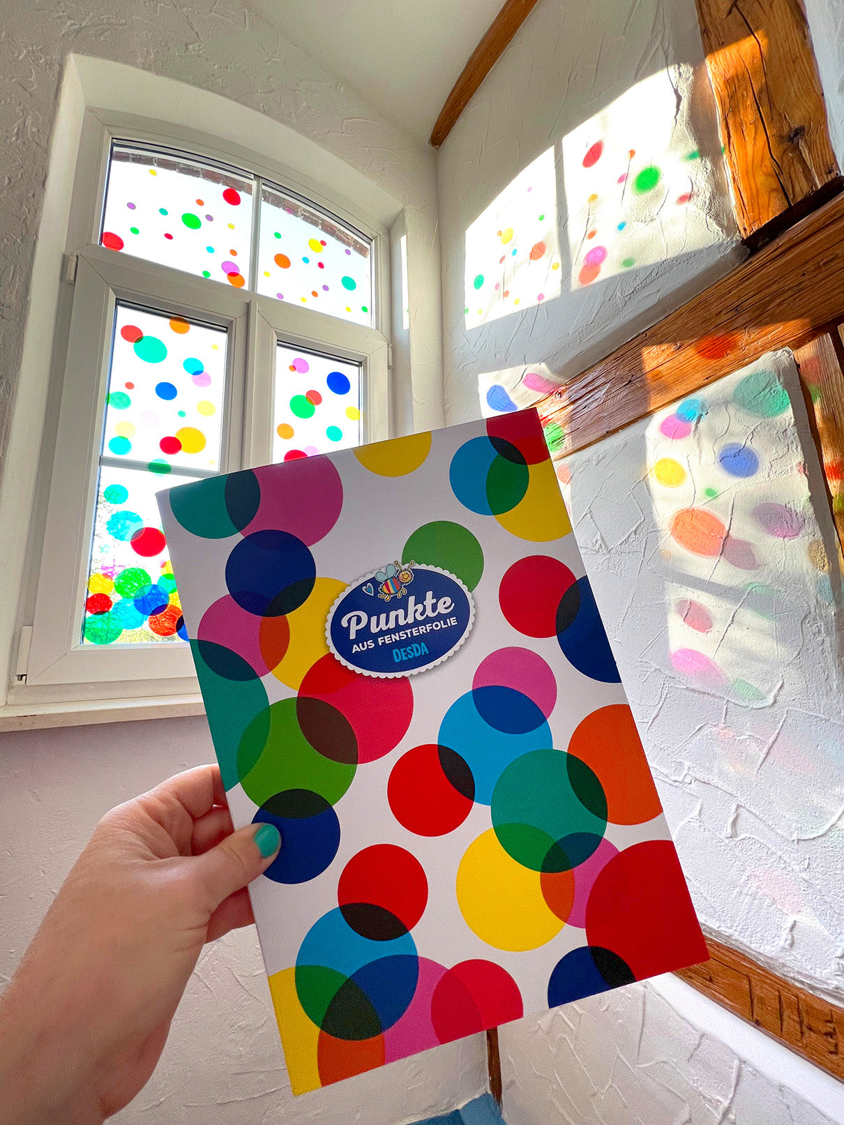 Bringe die Punkte nach Belieben auf deiner Fensterscheibe an und du und andere werden tagtäglich Freude an diesem wunderschönen Farbenspiel haben!