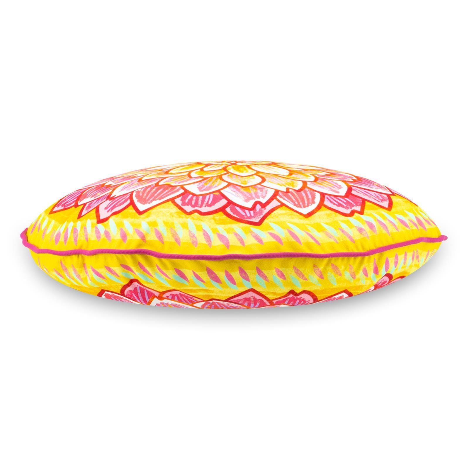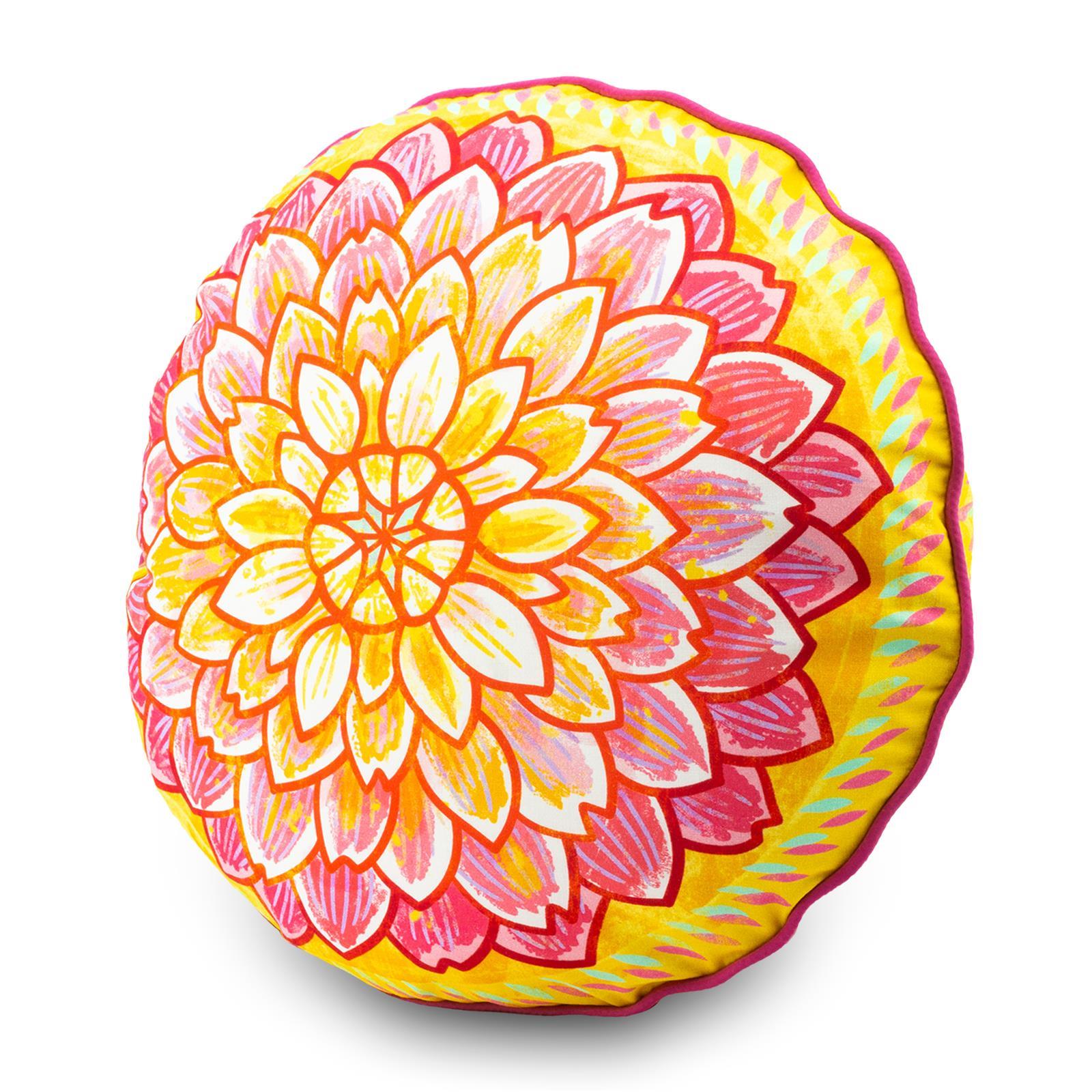 Das wunderschöne Blütenmotiv auf Vorder- und Rückseite wurde mit einer pinken Biese kombiniert. Auch als Sitzkissen mit Schaumstoffkern erhältlich!