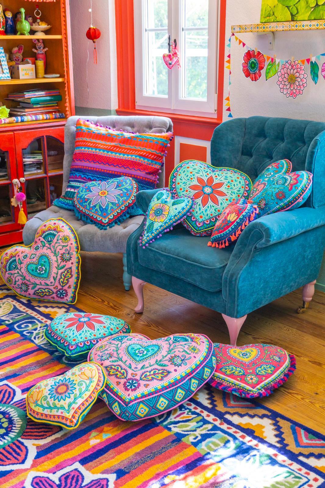 Beschenken Sie sich selbst und andere mit den einmaligen Dekokissen aus der bunten Bine Brändle Stoffkollektion. Der besondere Hingucker als Bodenkissen oder als Dekoration auf dem Sofa, auf Stühlen oder Sesseln und natürlich auch im Garten. Für gute Laune und Gemütlichkeit!