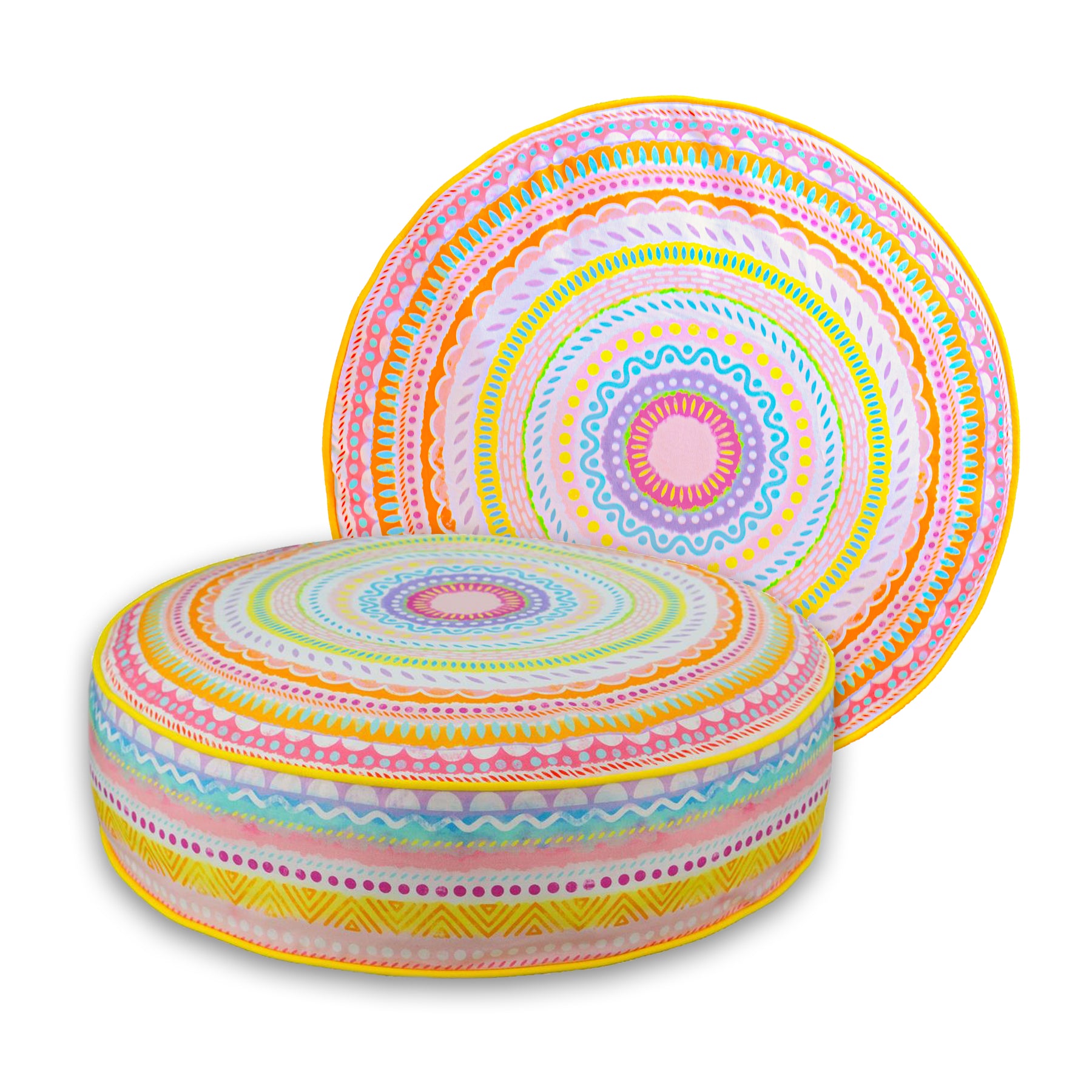 Dekokissen - Regenbogen Pastellgelb - Ø 50 cm / 12 cm Rand