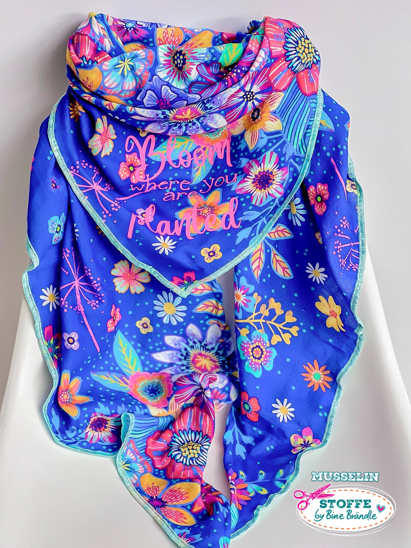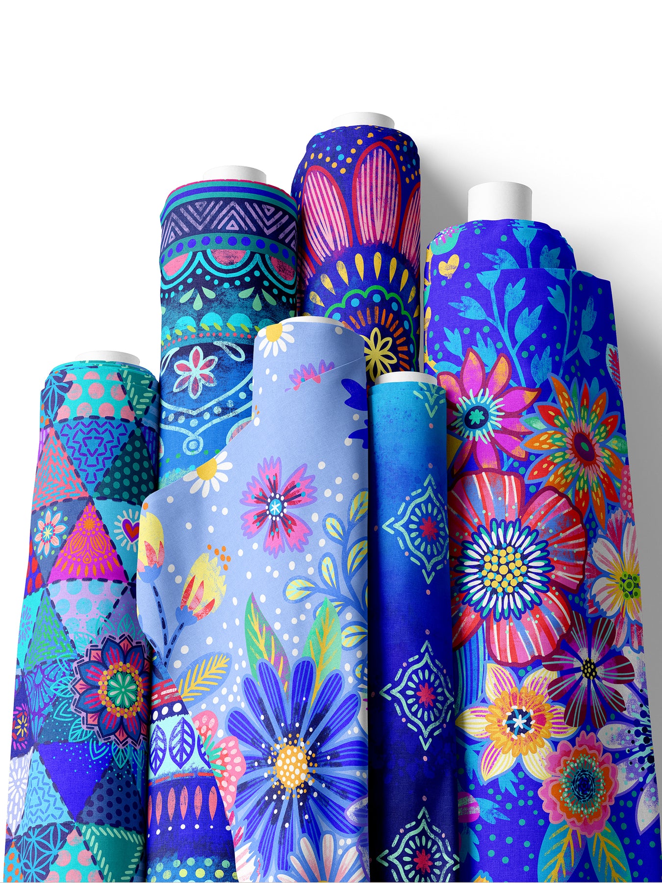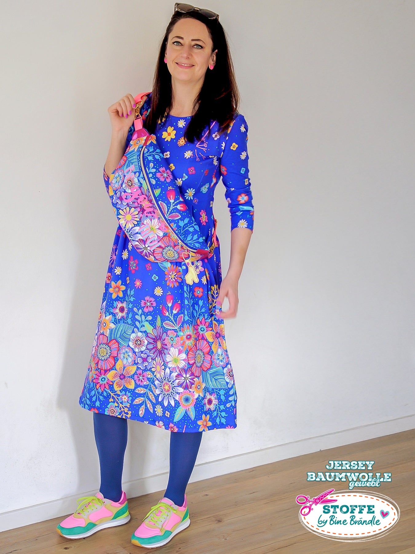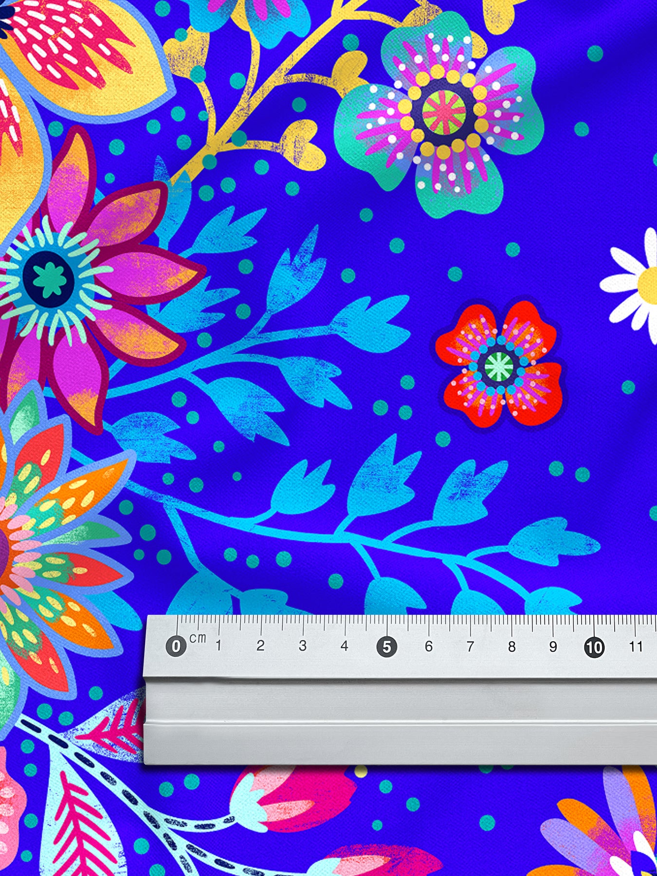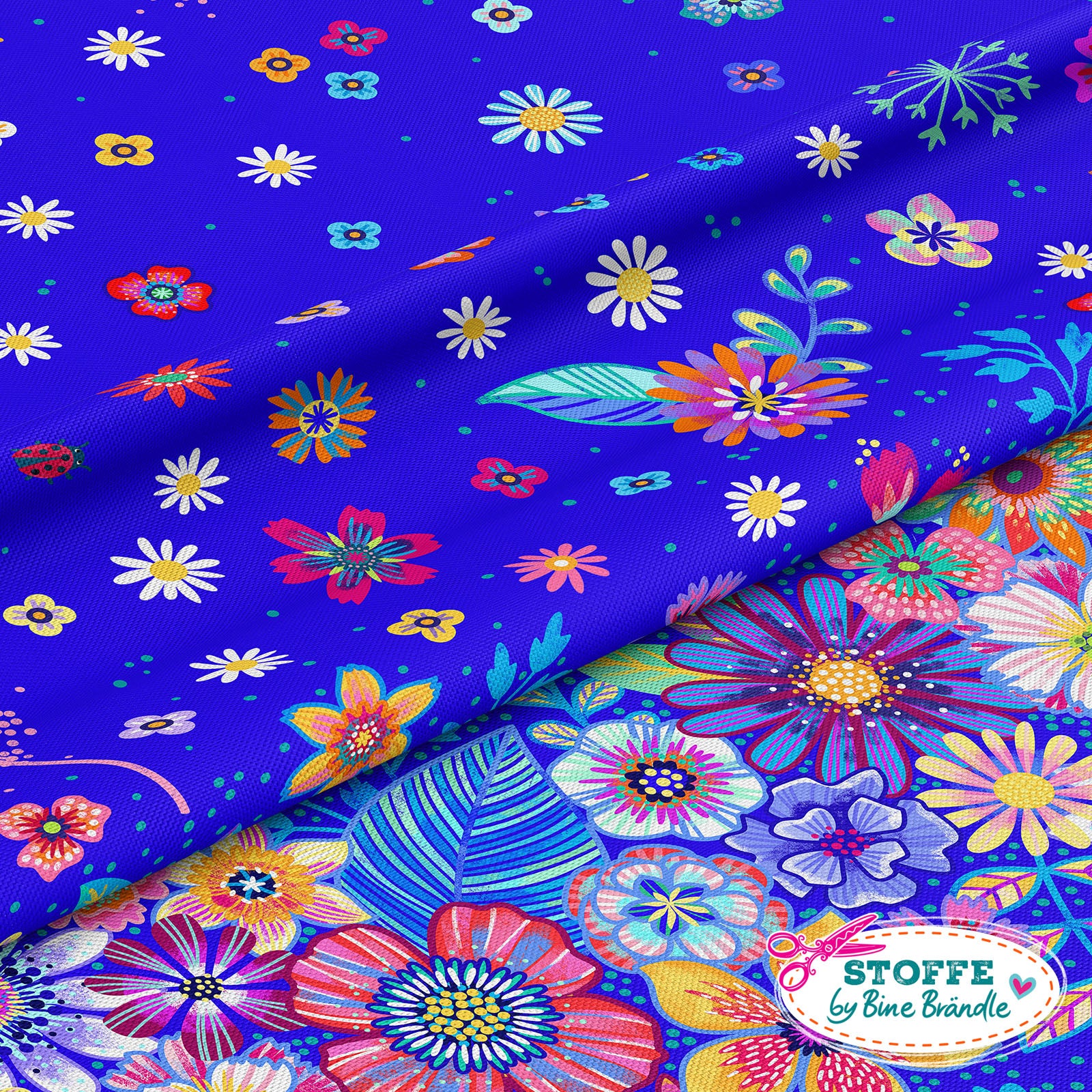 Farbenfroher Stoff mit dem Motiv "Blumenmeer Dunkelblau".