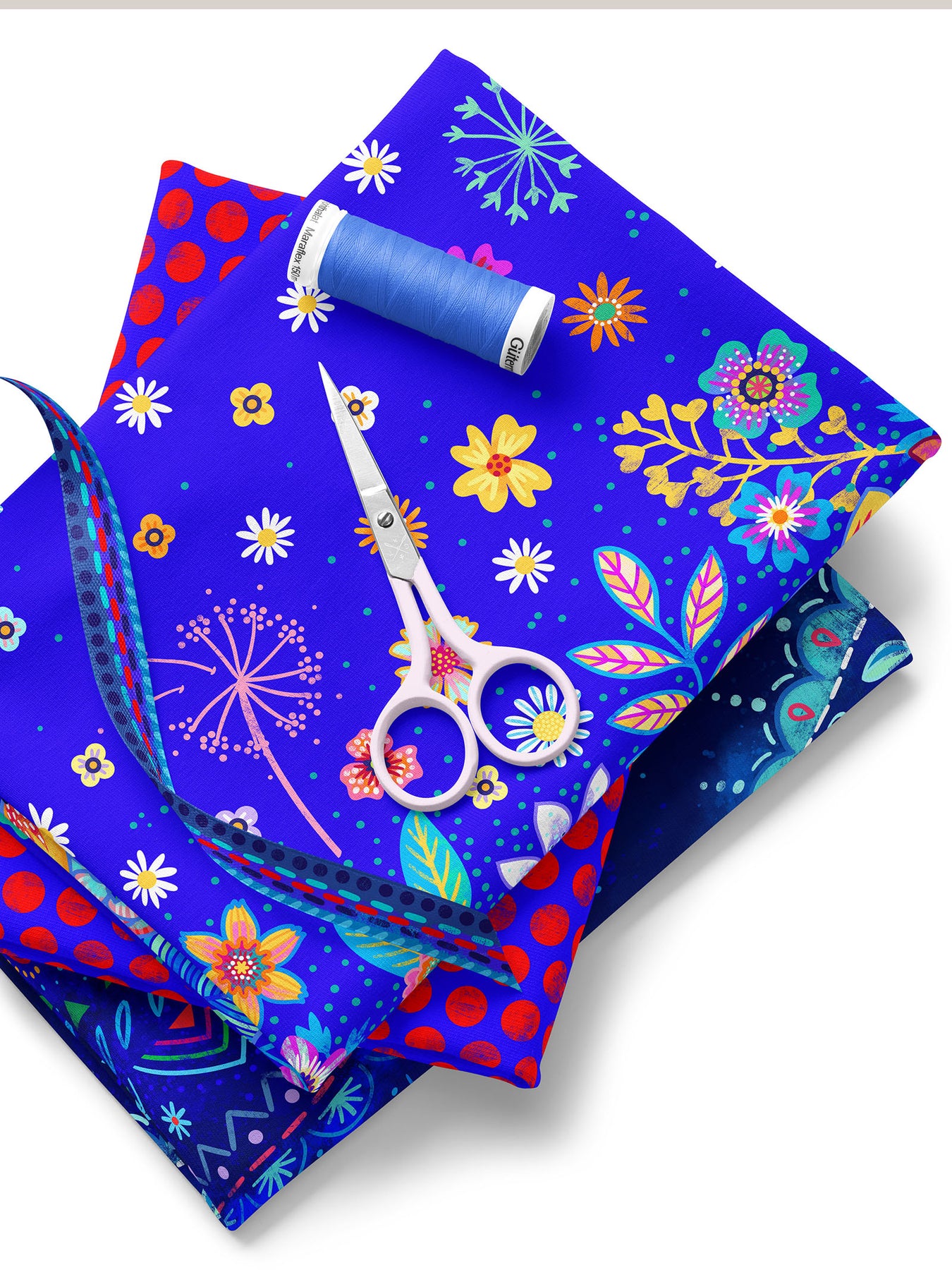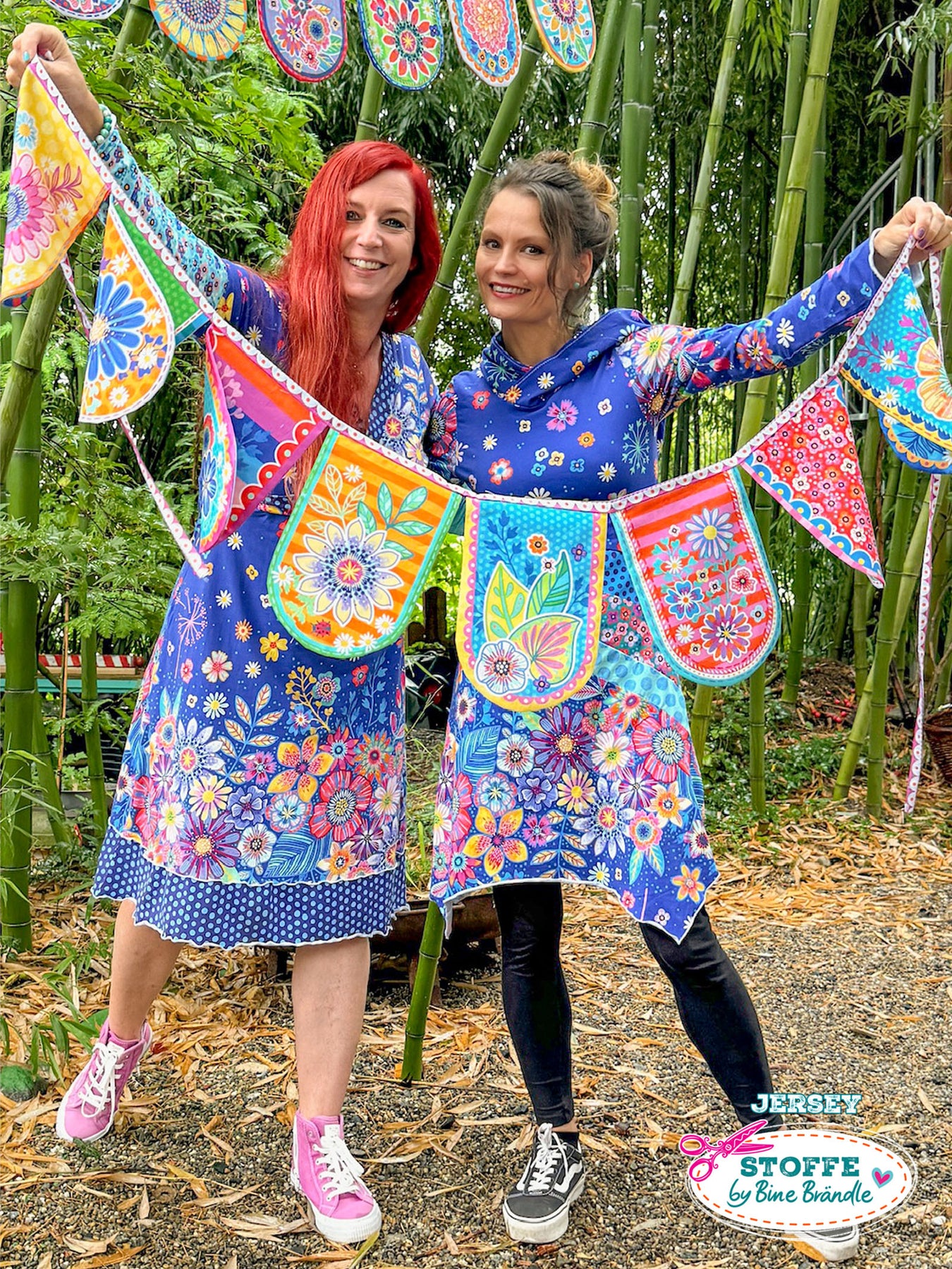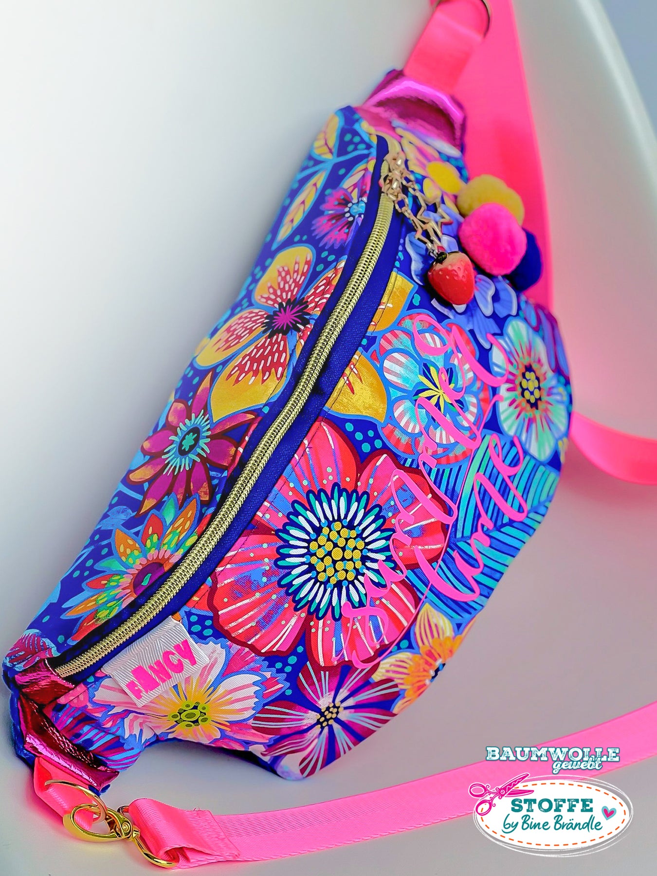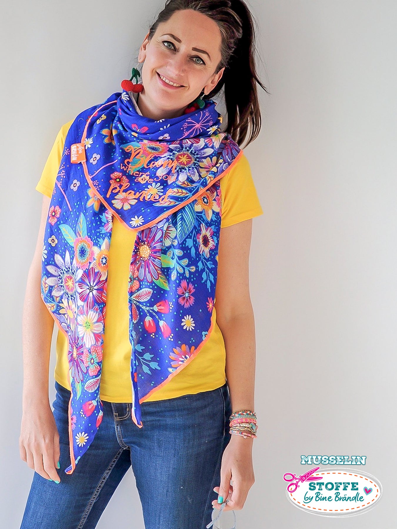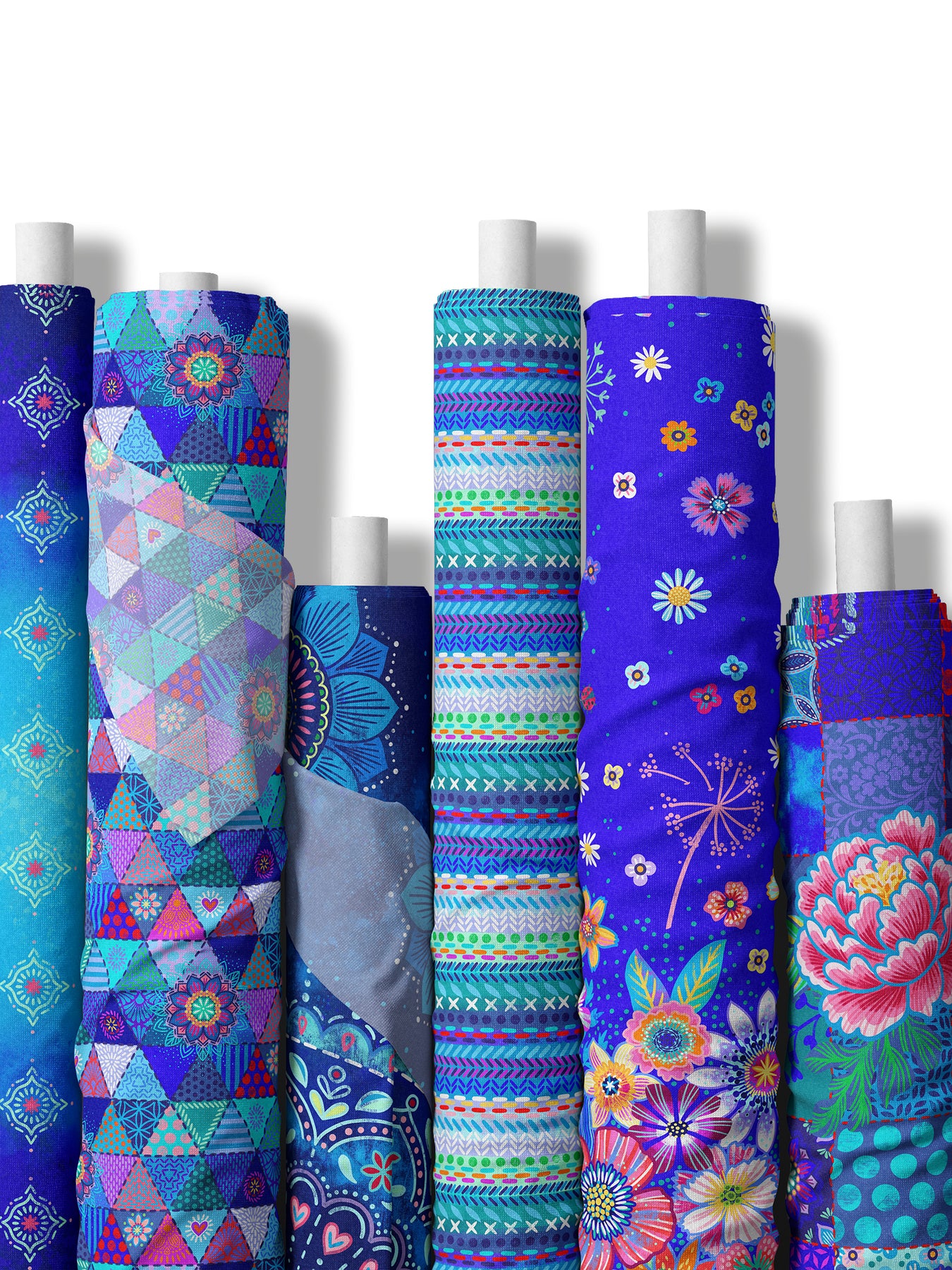 Farbenfroher Stoff mit dem Motiv "Blumenmeer Dunkelblau".