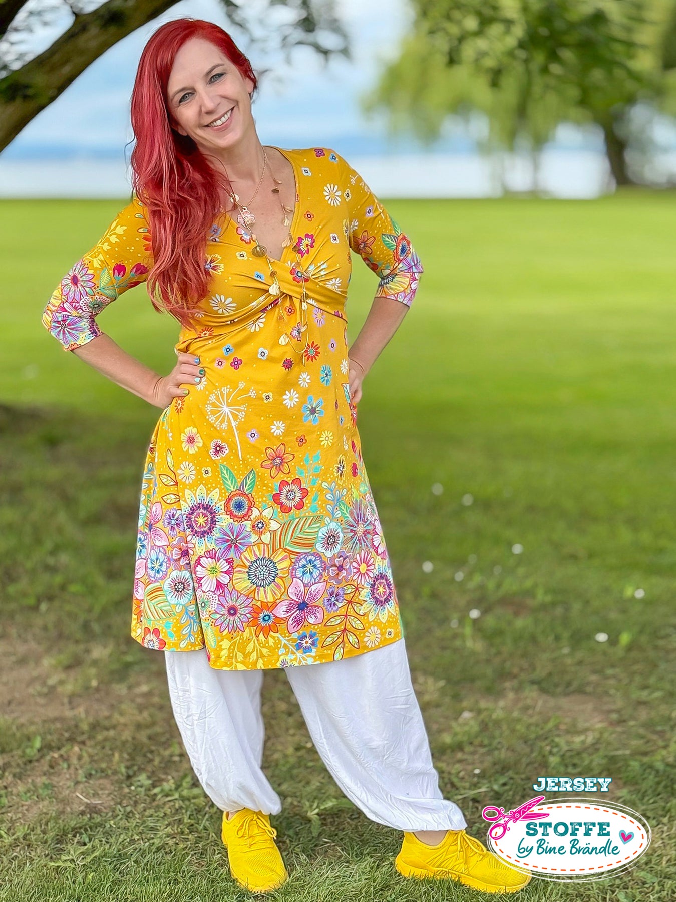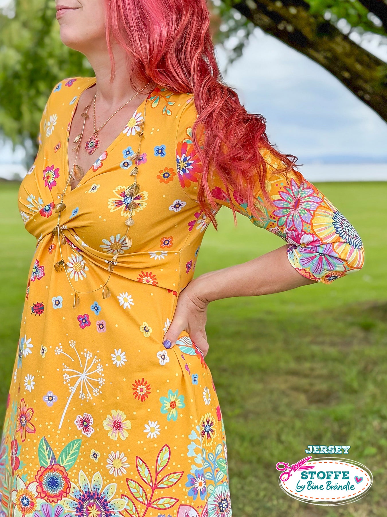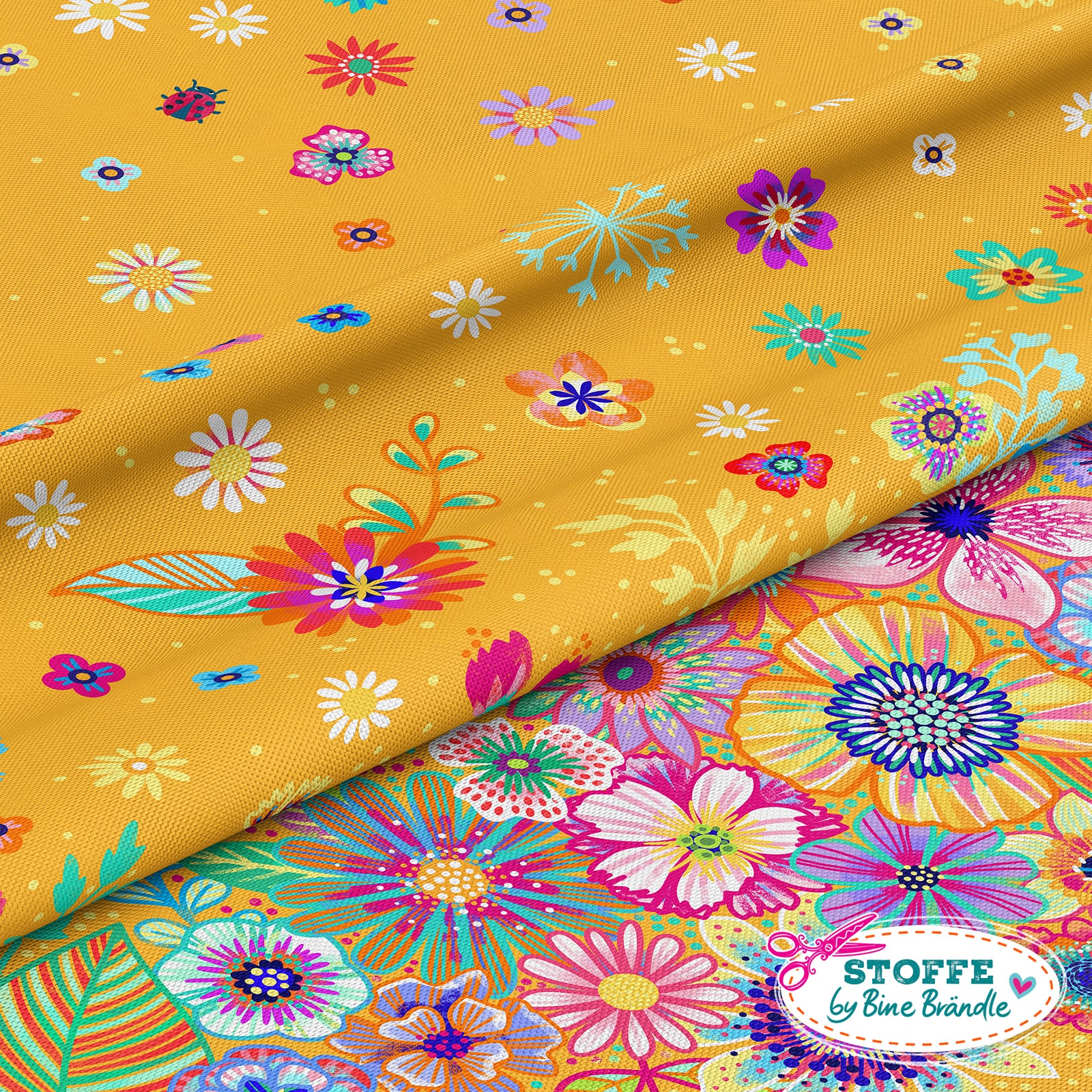 Farbenfroher Stoff mit dem Motiv "Blumenmeer gelb".