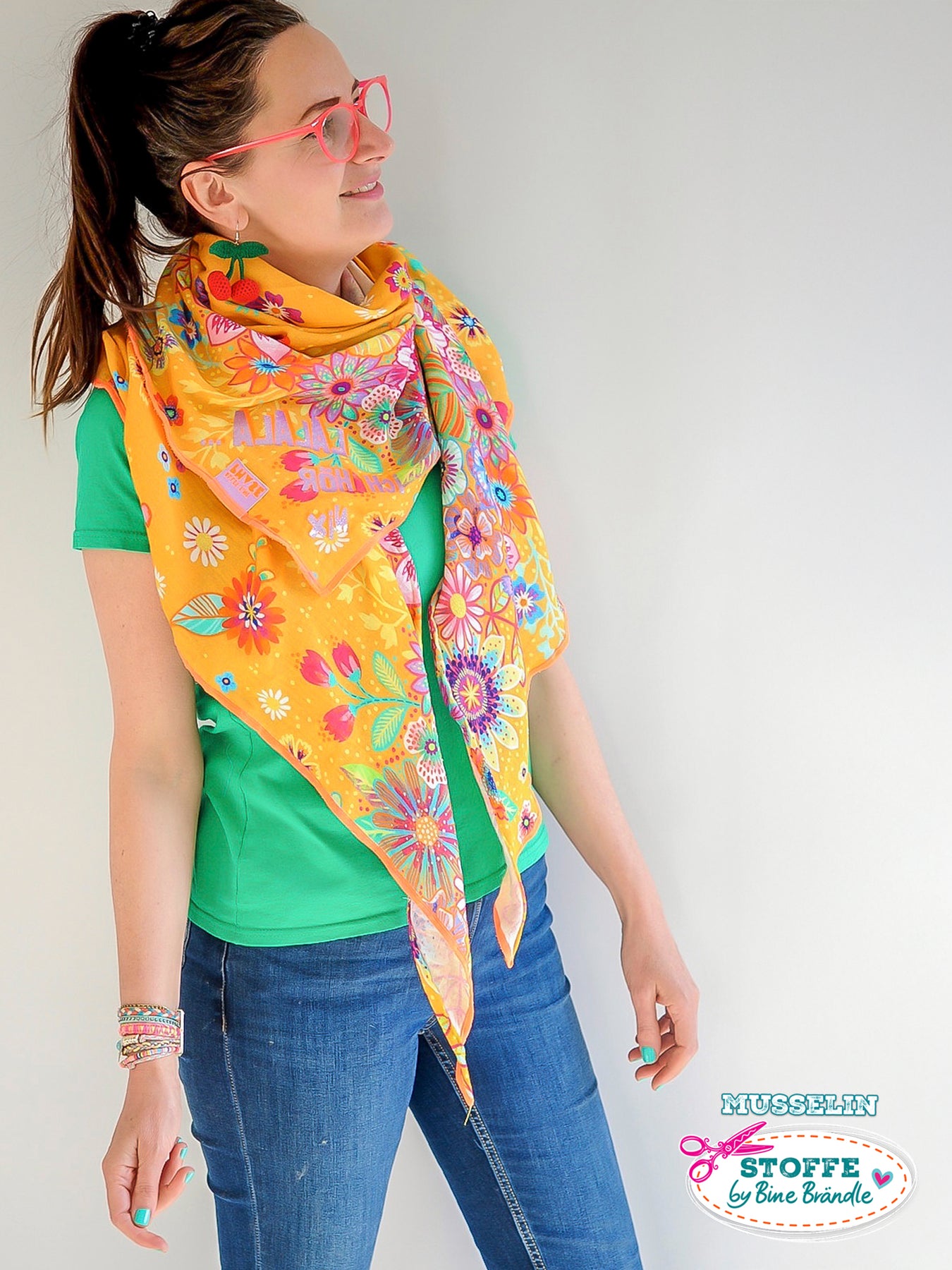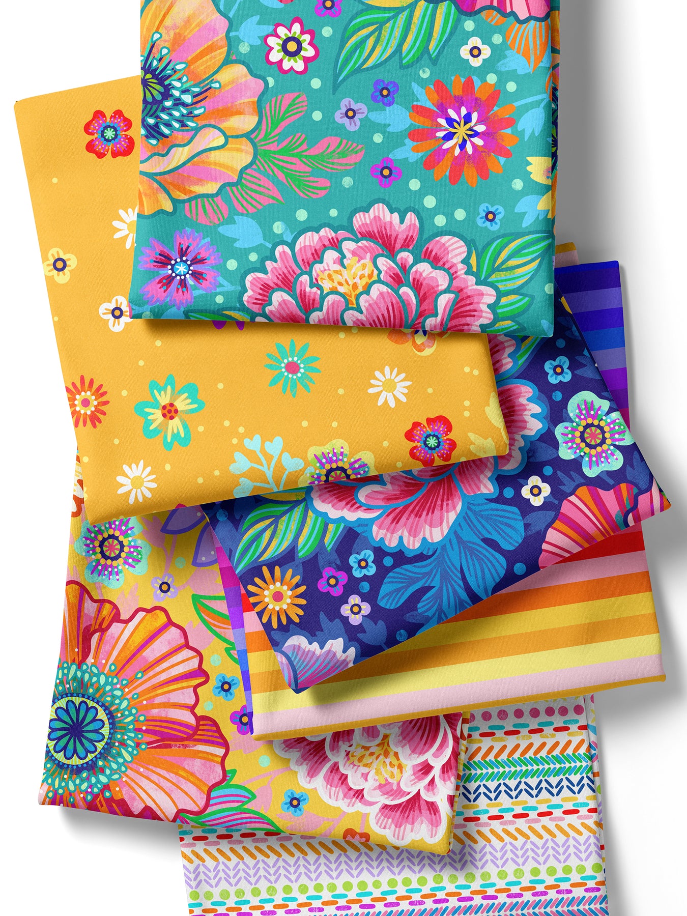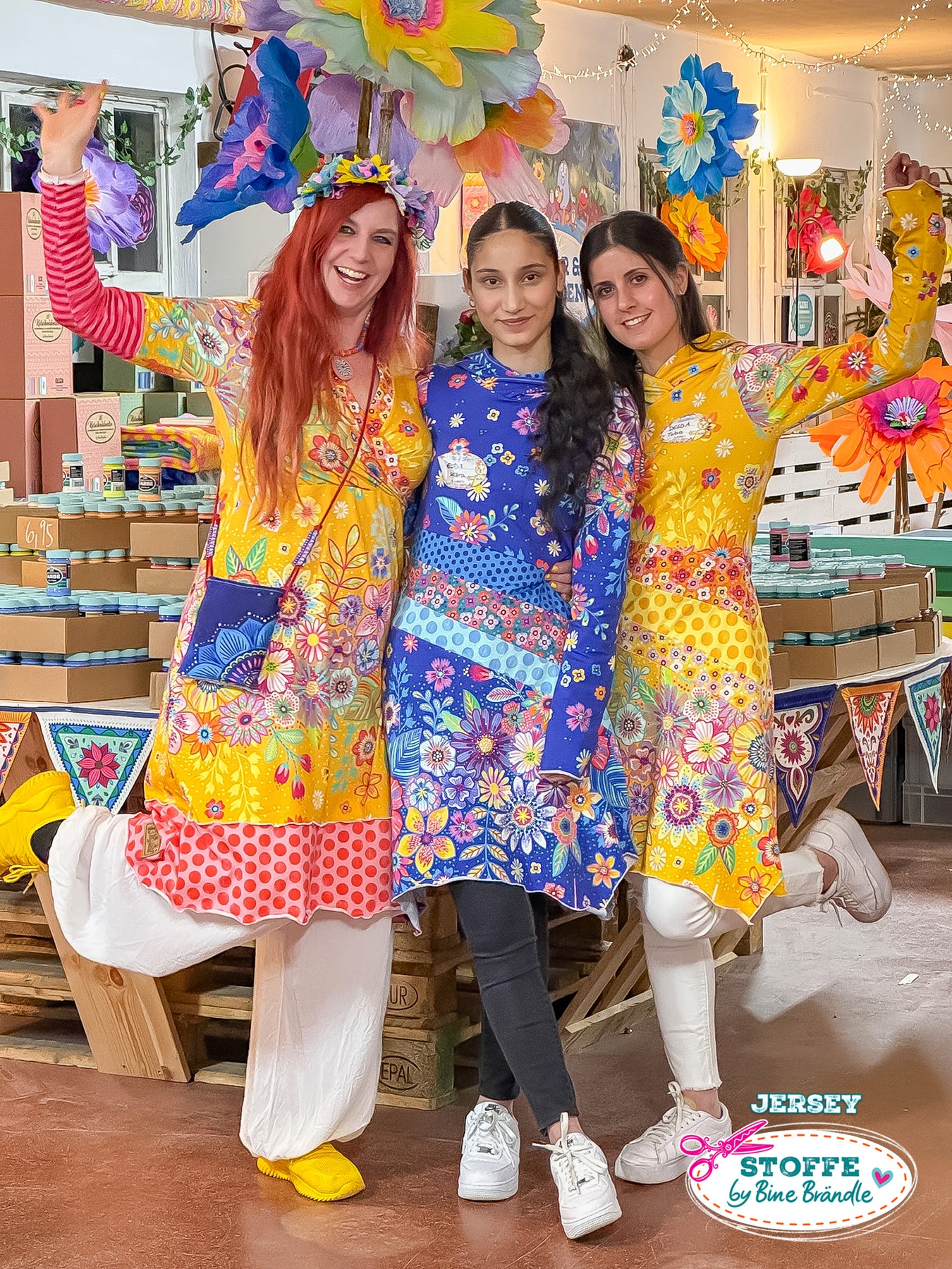 Farbenfroher Stoff mit dem Motiv "Blumenmeer gelb".