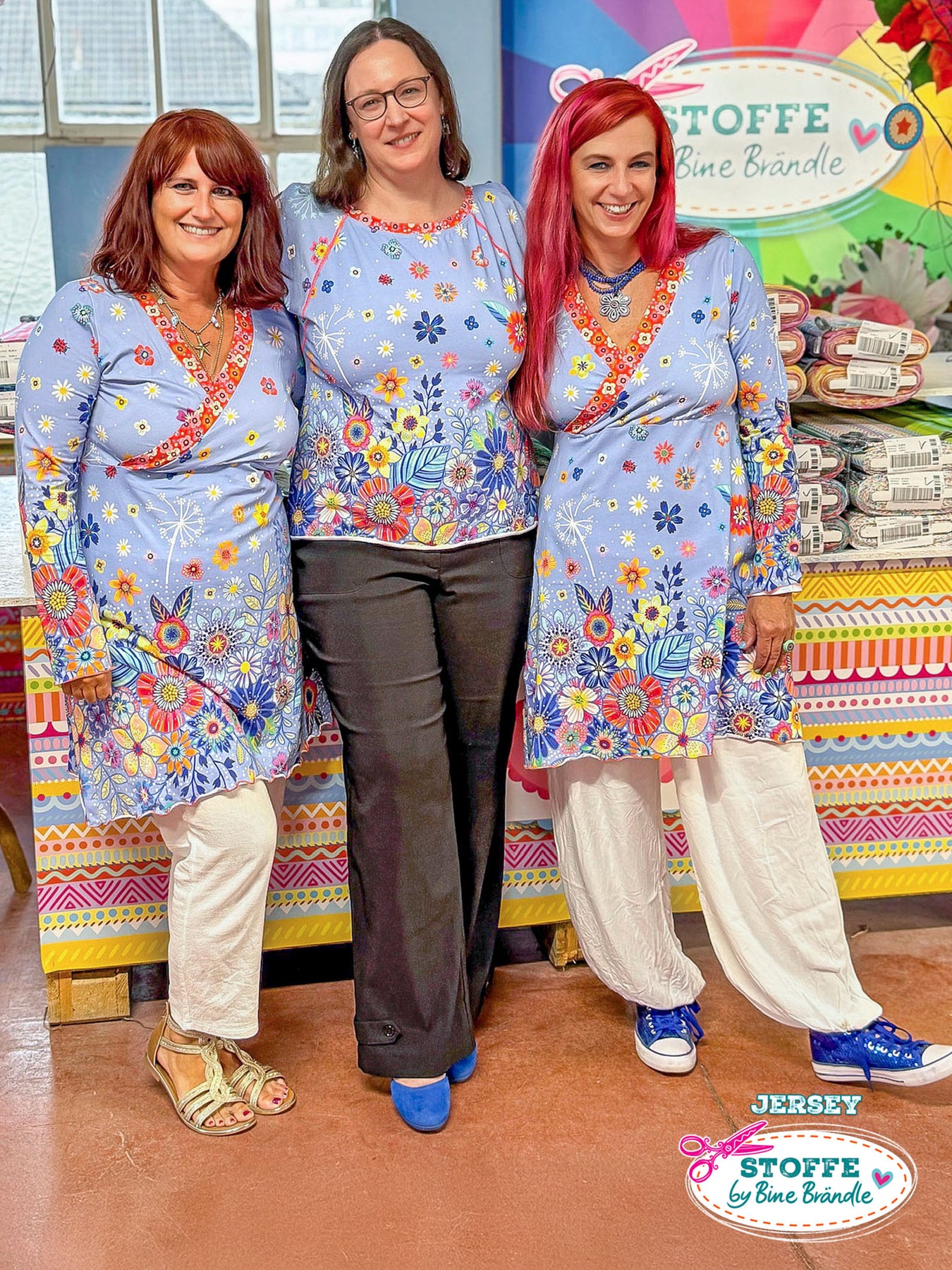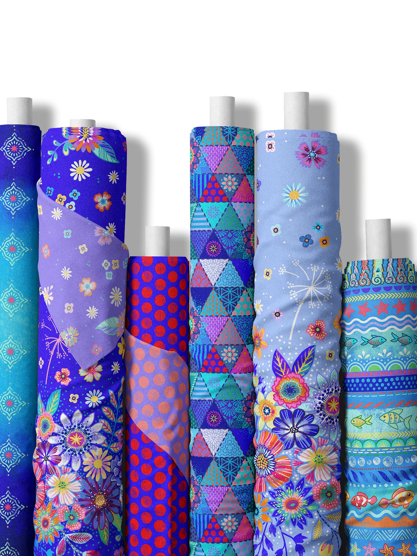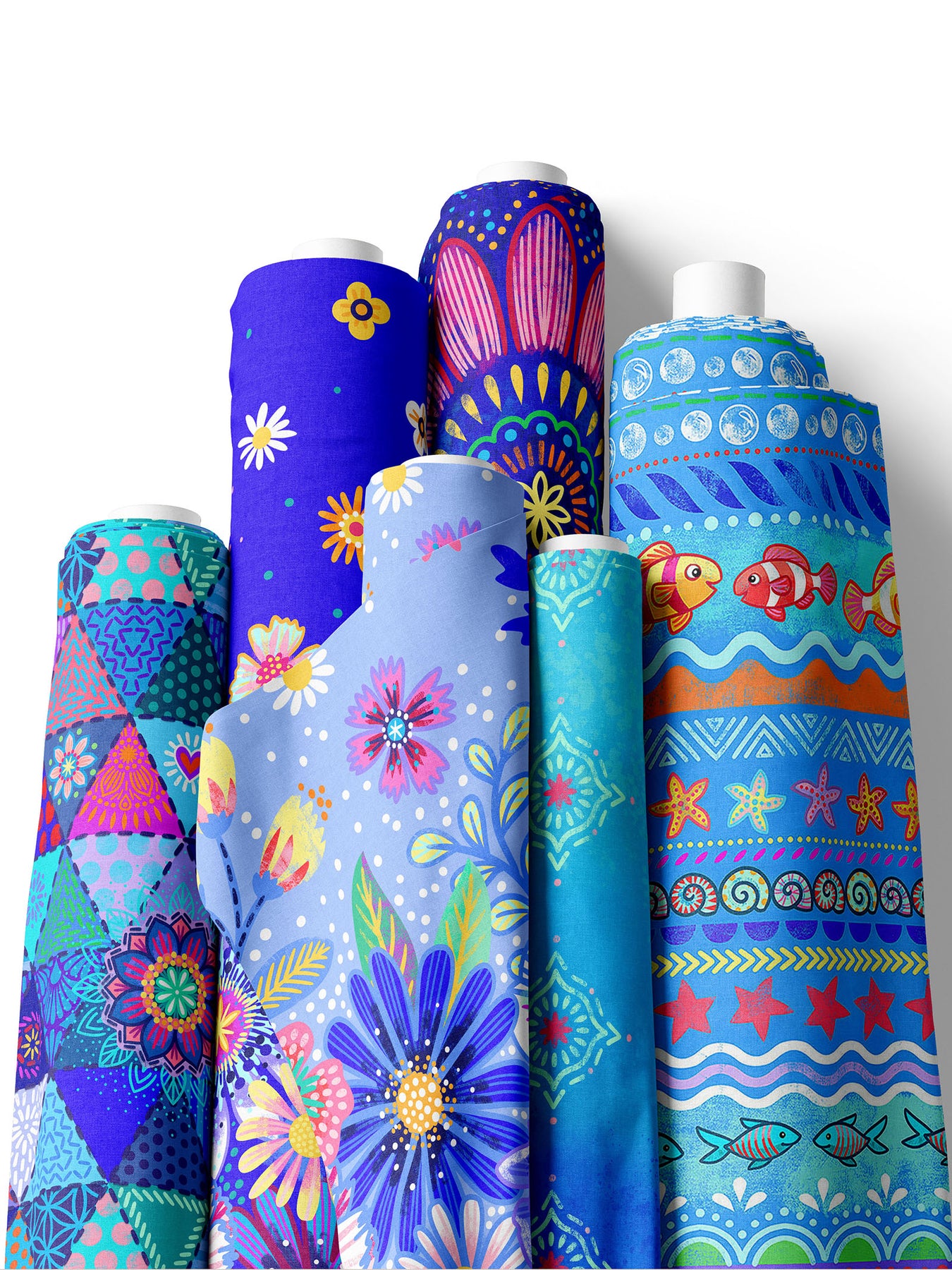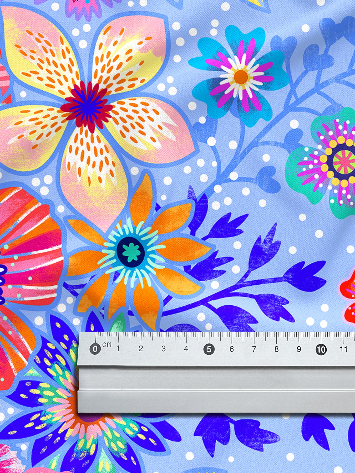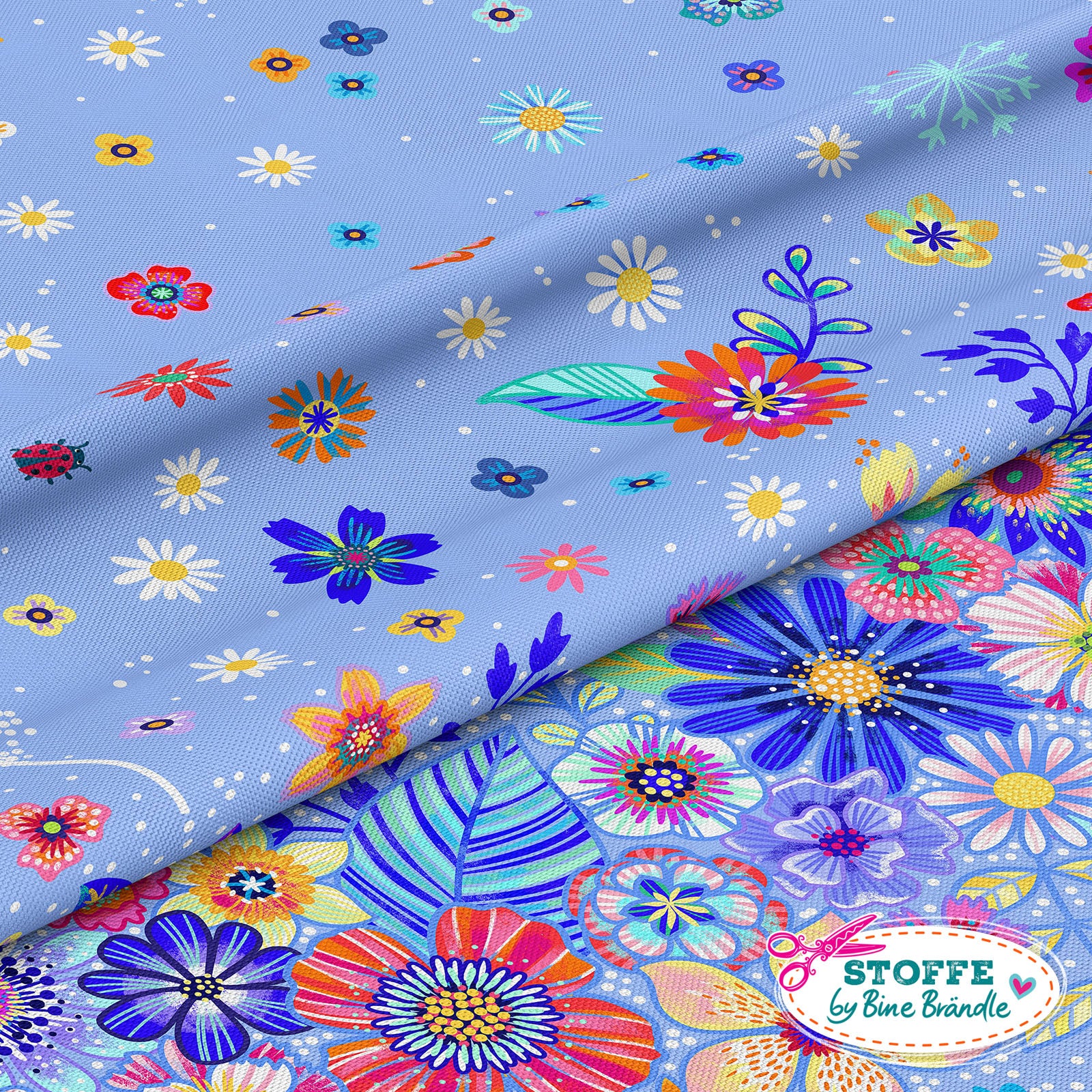 Farbenfroher Stoff mit dem Motiv "Blumenmeer Hellblau".