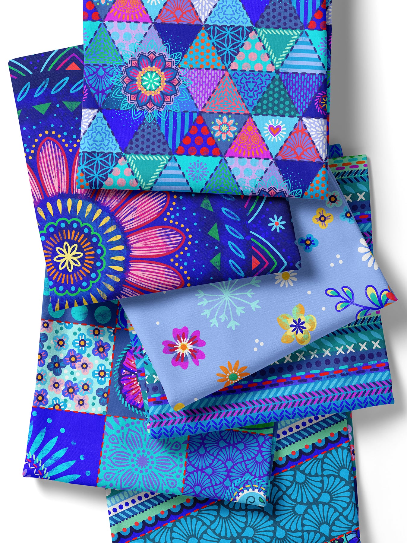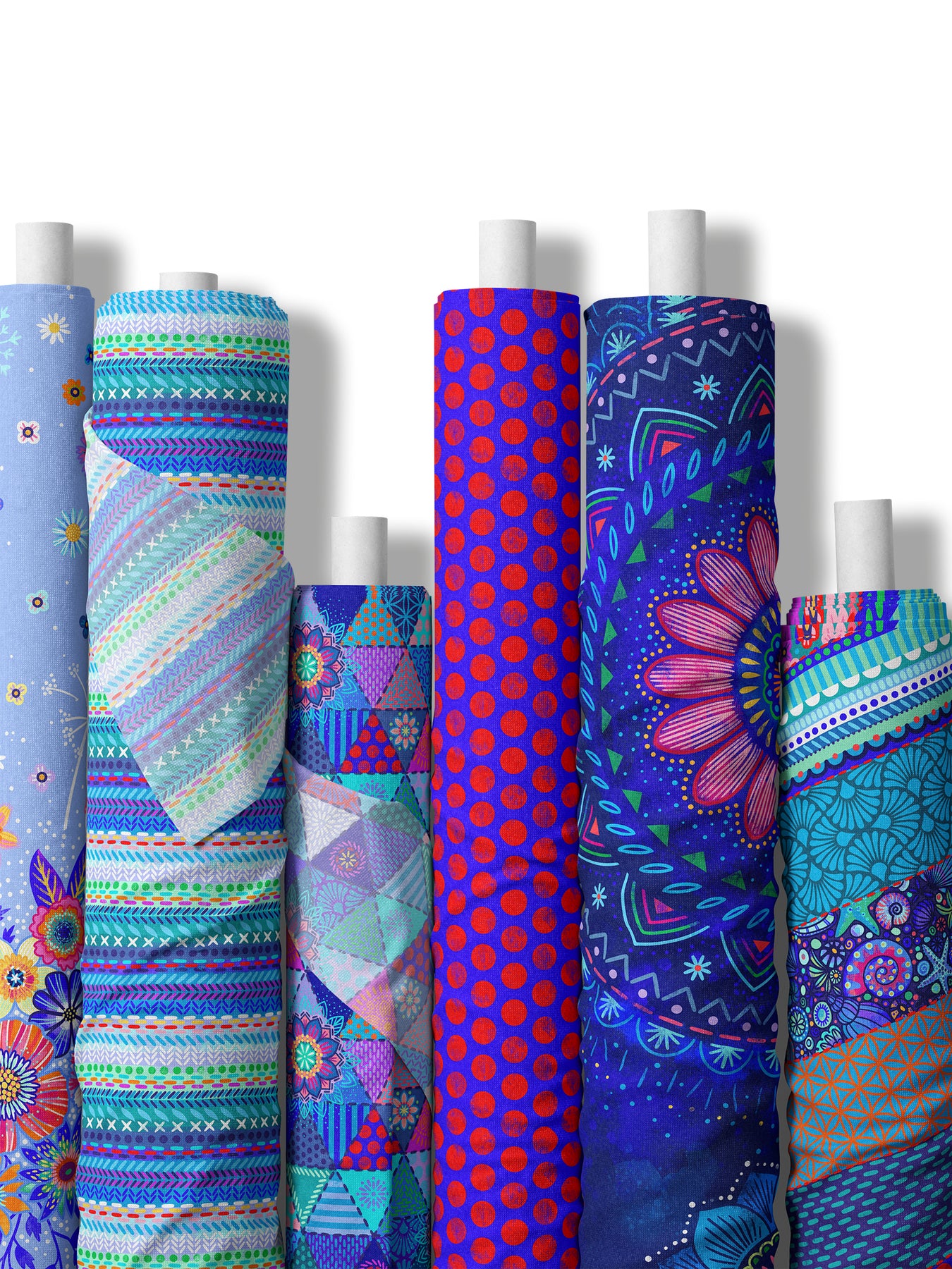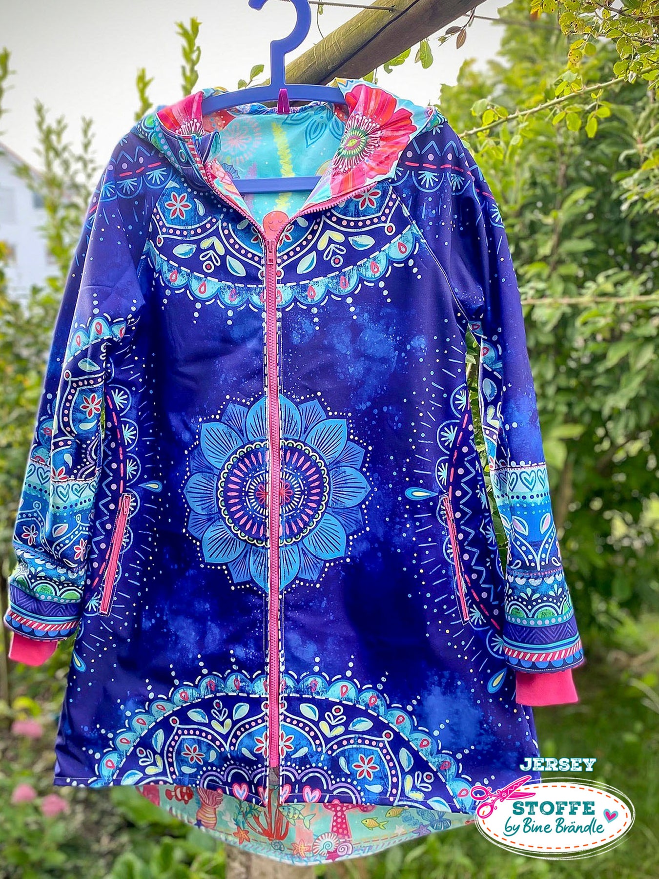 Farbenfroher Stoff mit dem Motiv "Mandalas dunkelblau".