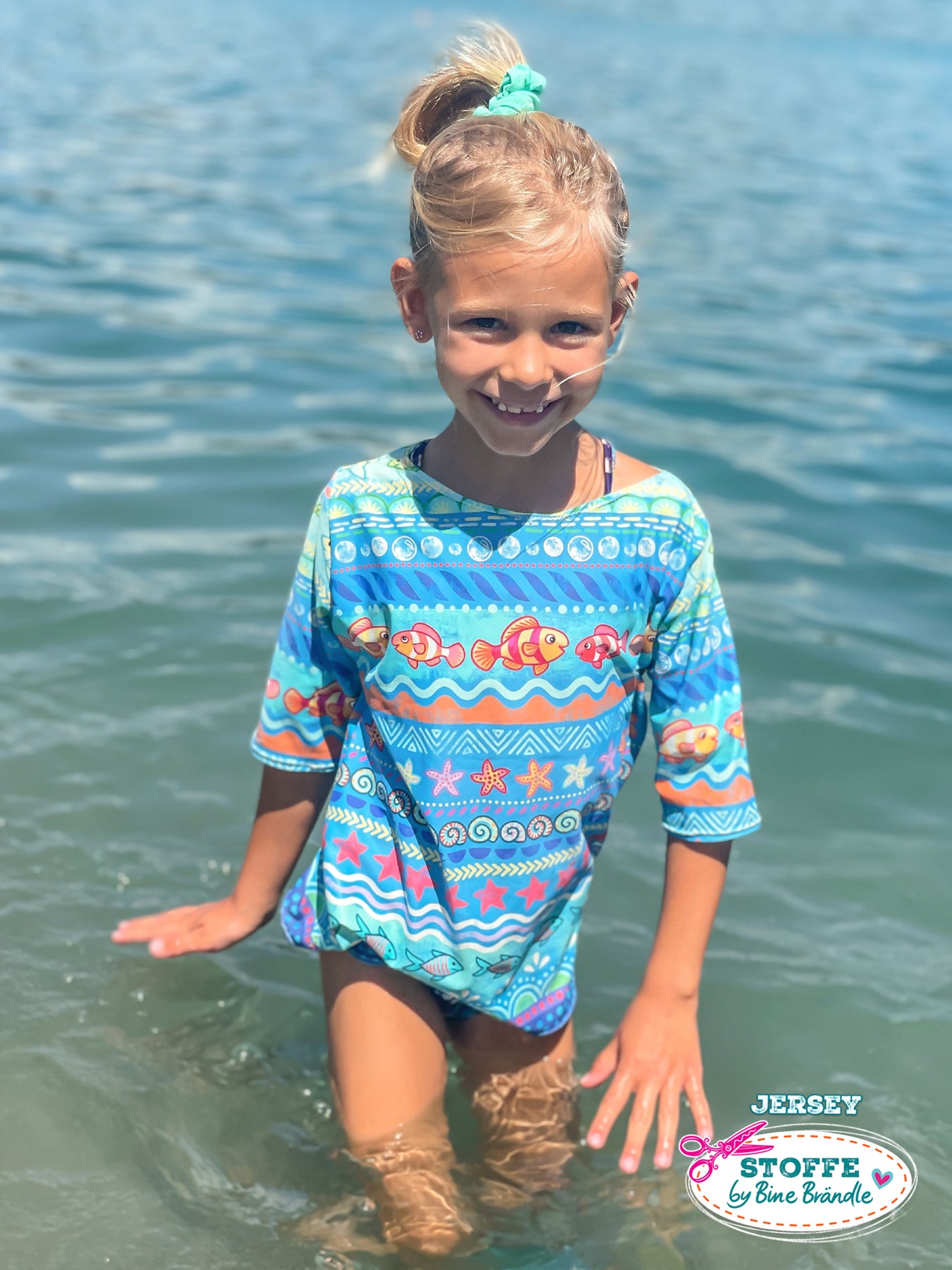 Farbenfroher Stoff mit dem Motiv "Meeres Multistereifen".