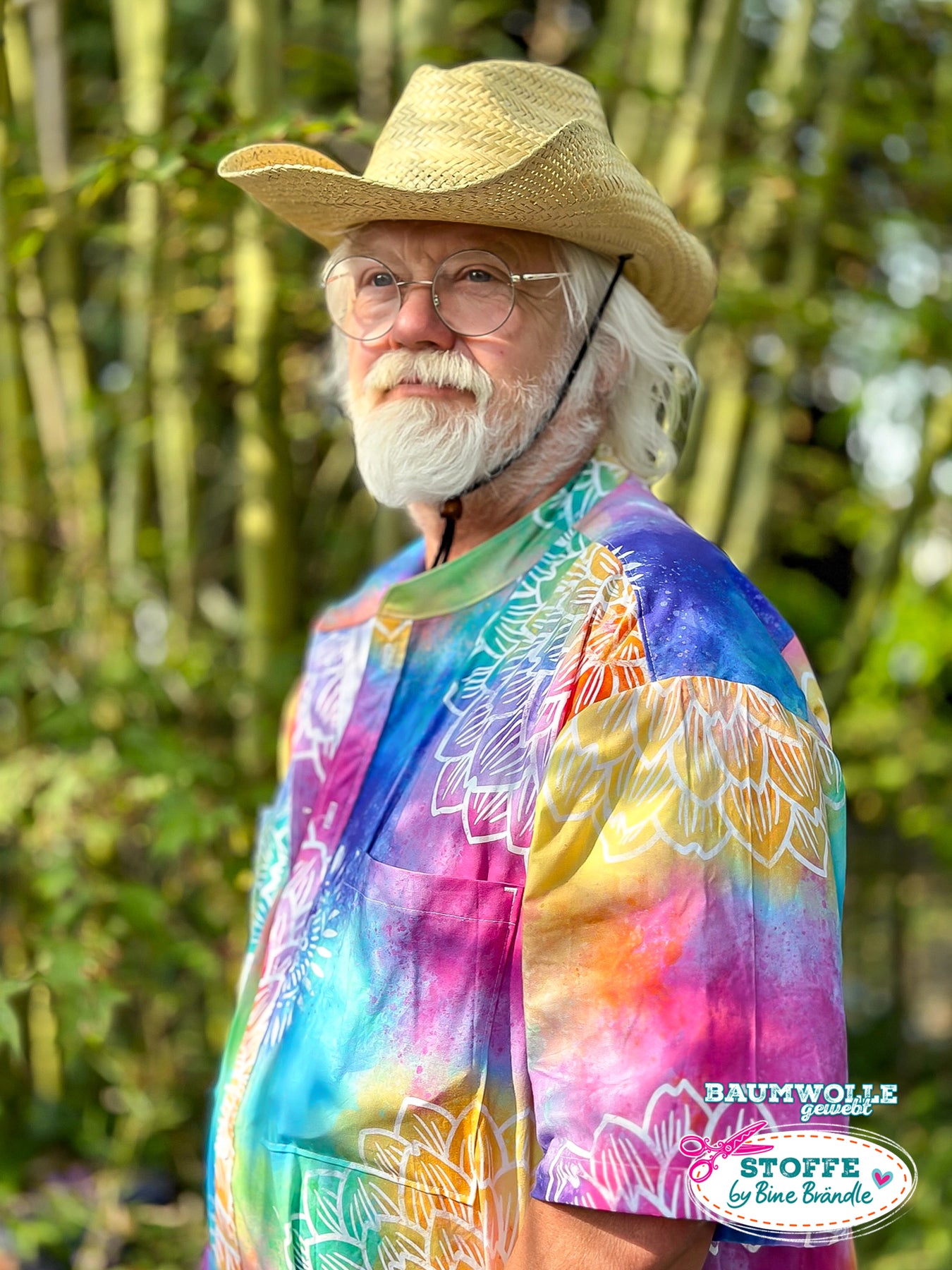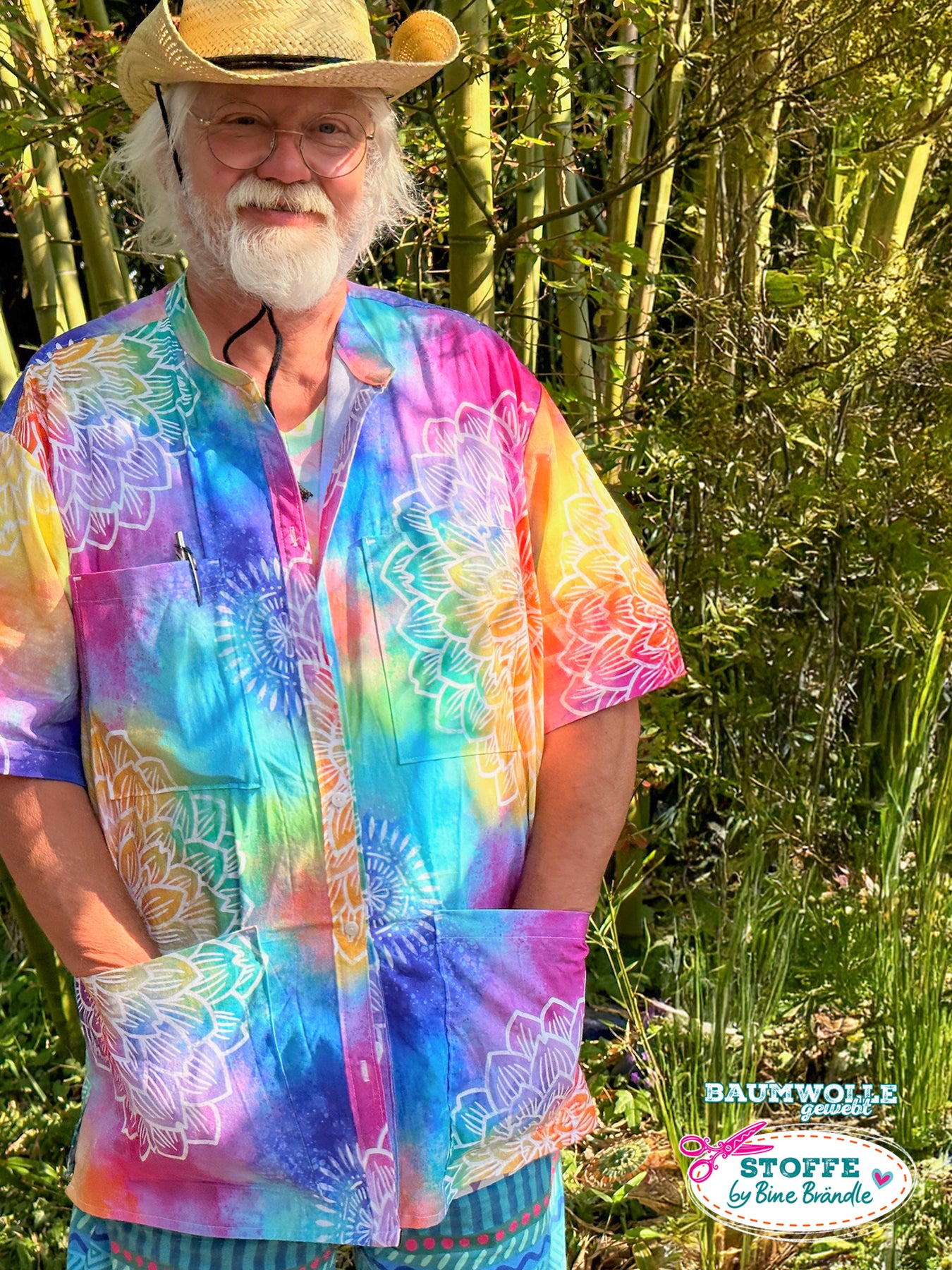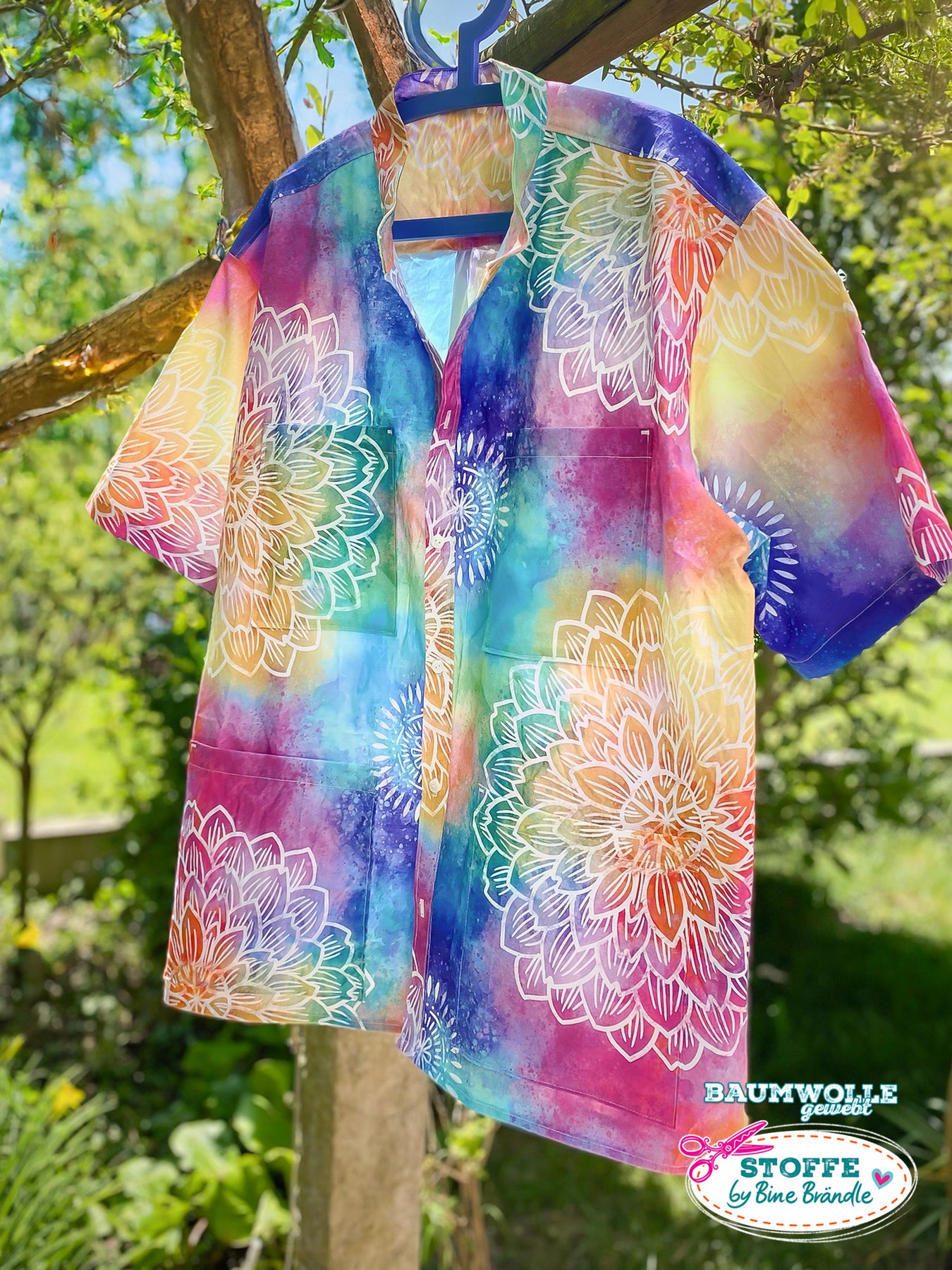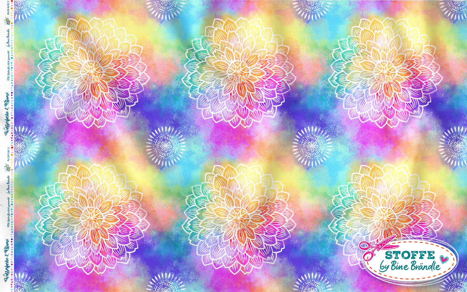 Farbenfroher Stoff mit dem Motiv "Wasserfarbe und Blume".