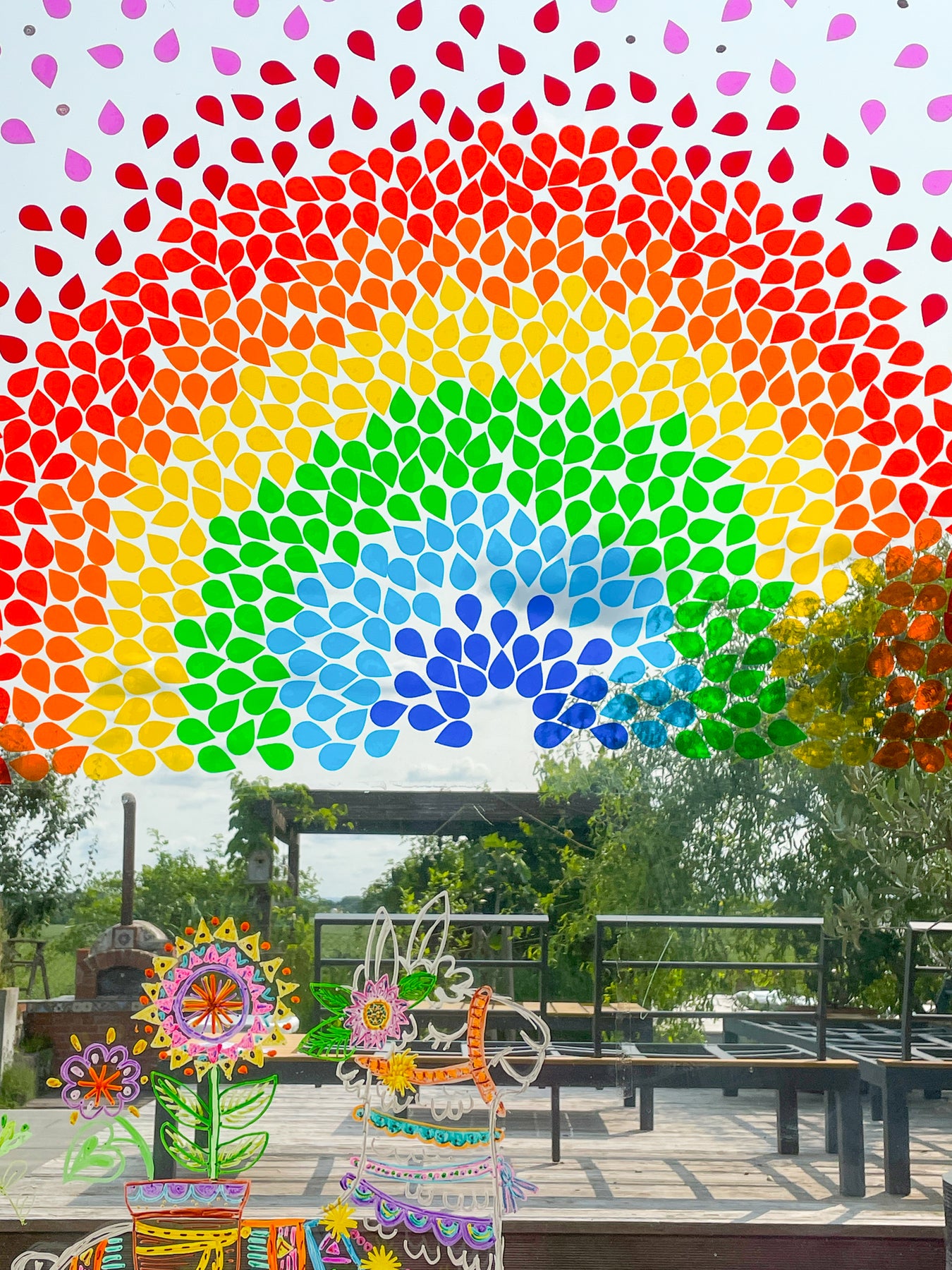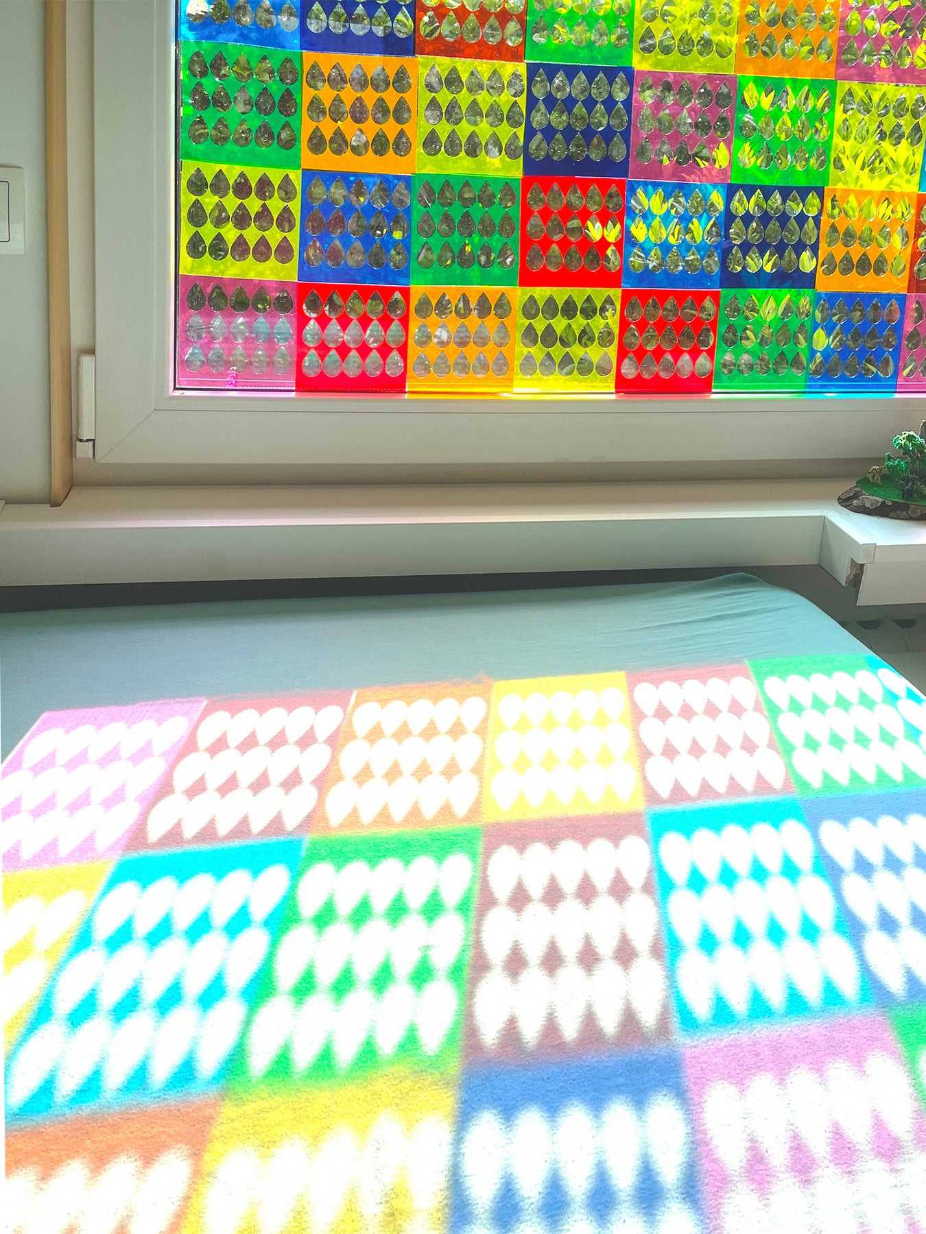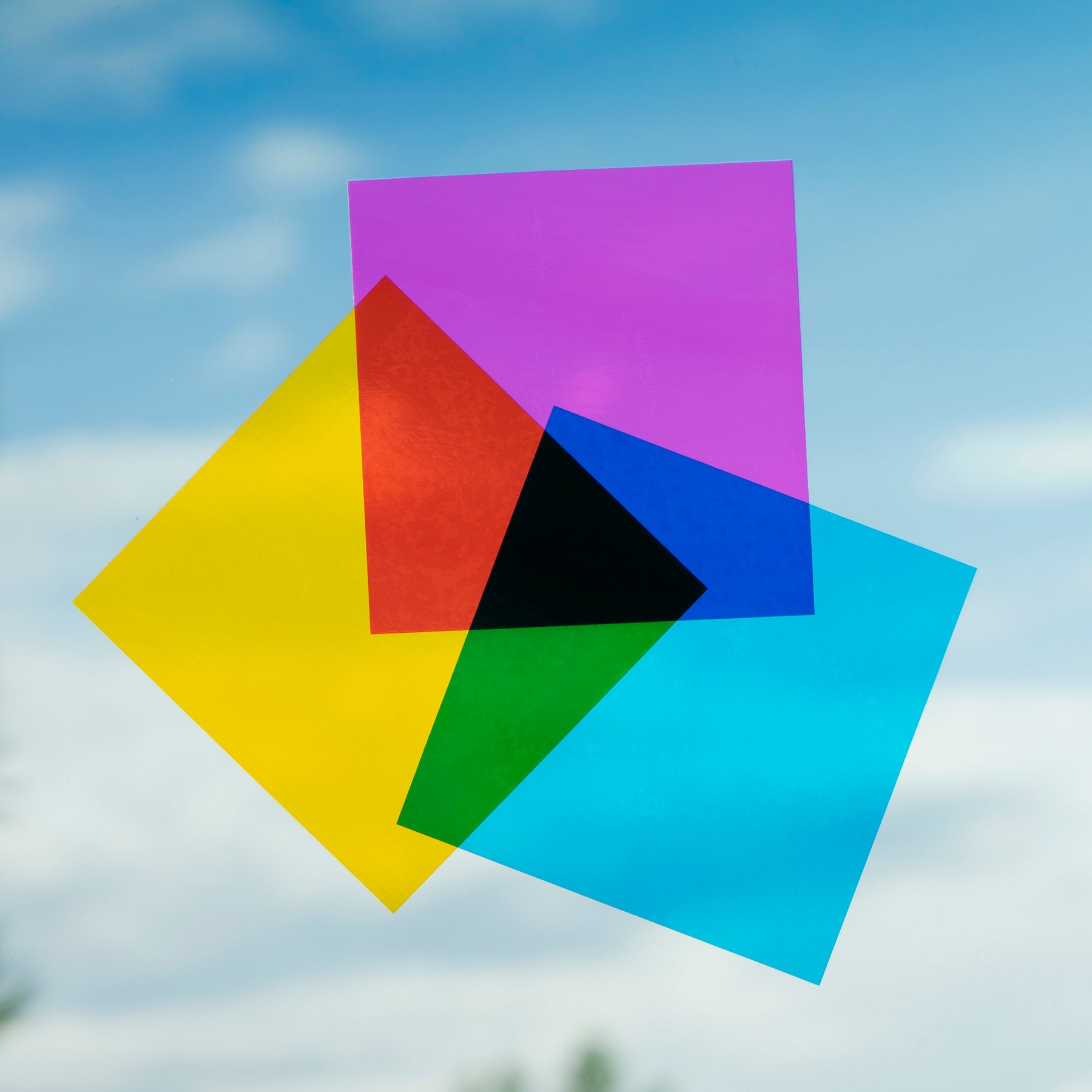 Die Folie kann beliebig zugeschnitten oder ausgestanzt werden – ideal für kreative Fensterdesigns mit tollen Farbeffekten durch Überlappung.
